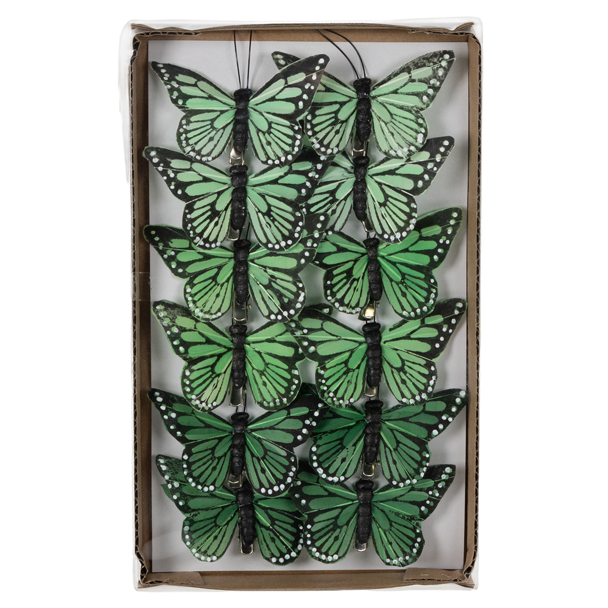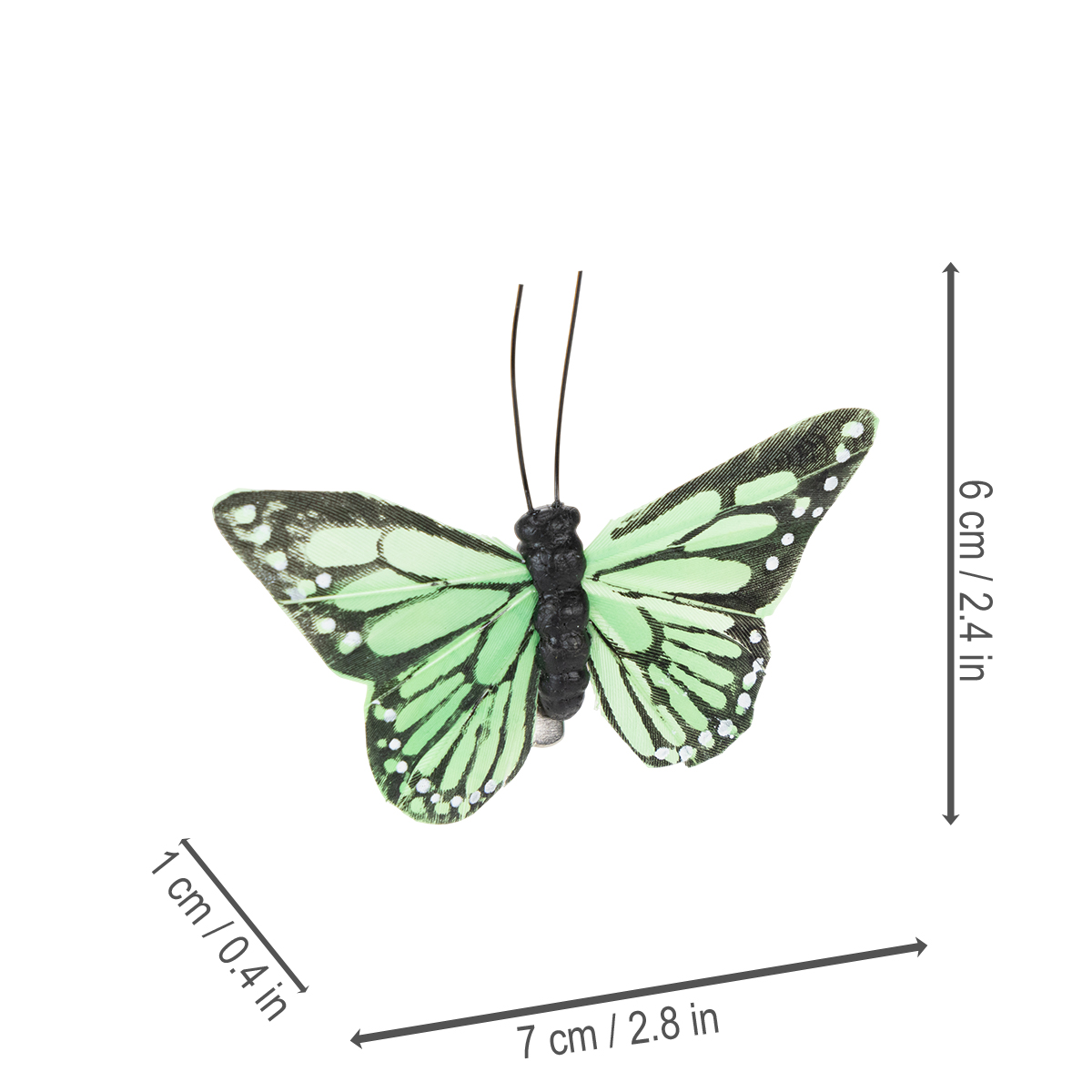 Vem älskar inte fjärilarnas mjuka fladdrande och fängslande färger? Med våra fjäderfjärilsdekorationer kan du få in denna speciella känsla direkt i ditt hem. Oavsett om de är på väggen, i fönstret eller som mittpunkt på bordet, ger dessa fina, skimrande gröna fjärilar en touch av magi till vilket rum som helst. Tänk dig hur dessa små konstverk mjukt lyser i ljusets spel och ger en charmig och naturlig accent till ditt vardagsrum eller din trädgård. Perfekt för att skapa en glad atmosfär och få in en bit natur!