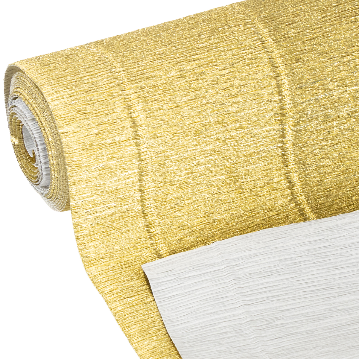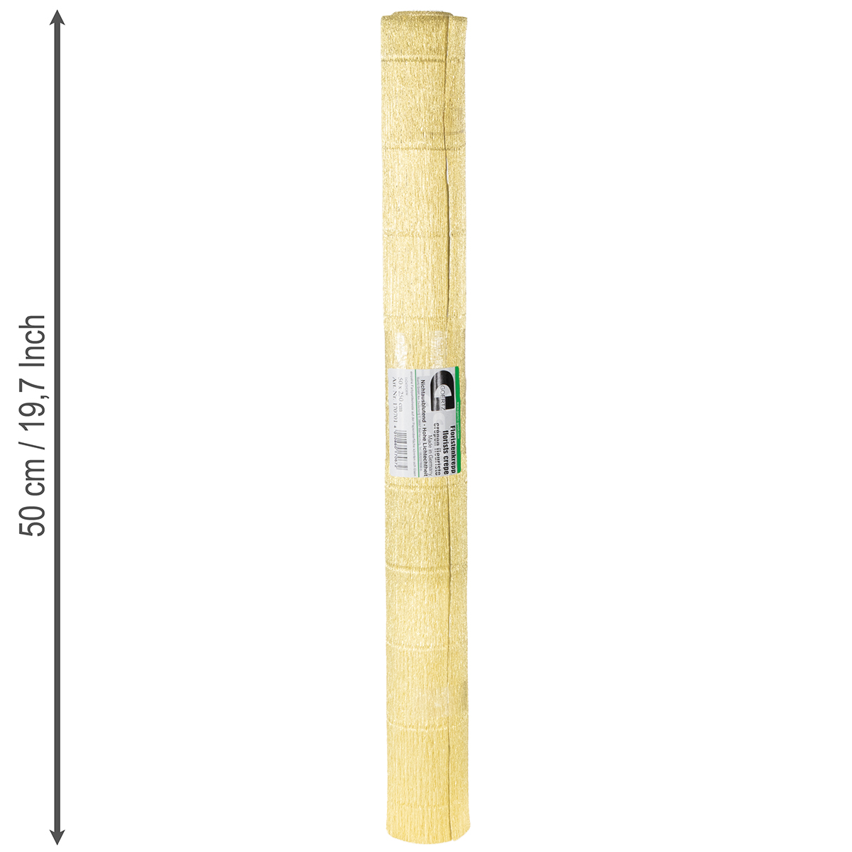 Blomsterhandlarens crepe-papper i guld lindas i en rulle och har en vit insida. Med en storlek på cirka 50 x 250 centimeter kan du förfina både stora och små dekorationer.