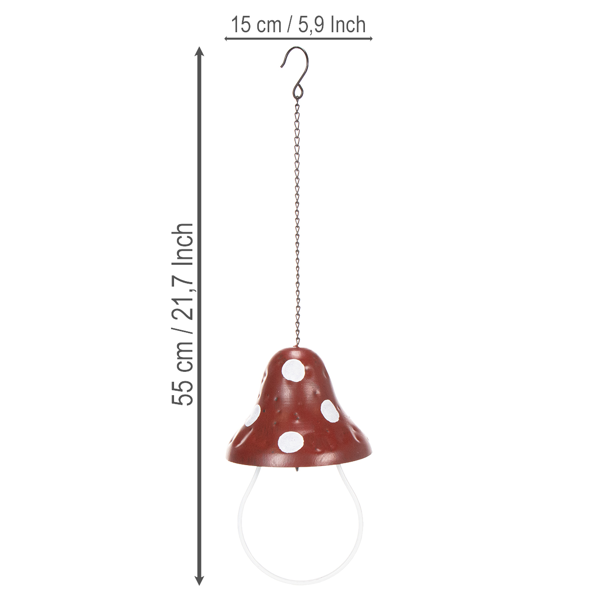 Produktnamn: Foderstation i metall, flugsvampsdesign, hängande, röd och vit, 25,5 cm