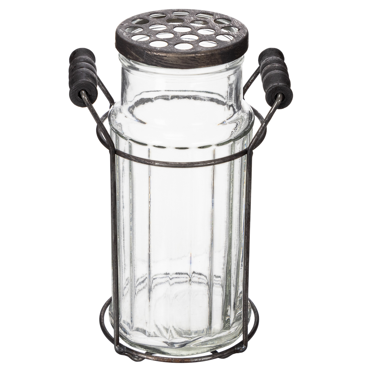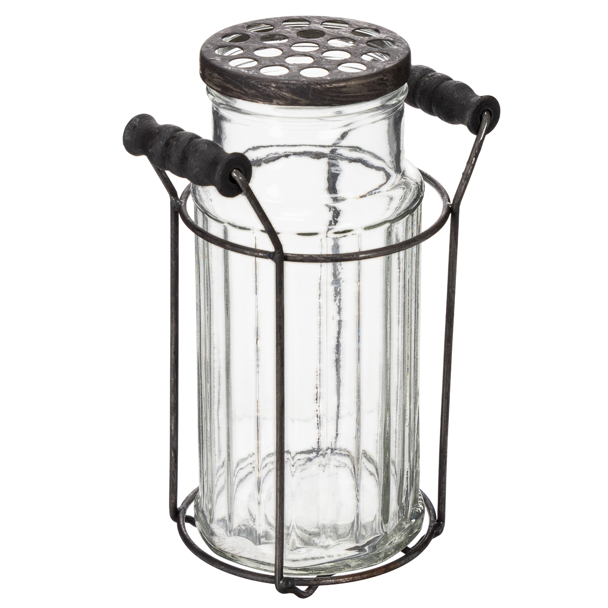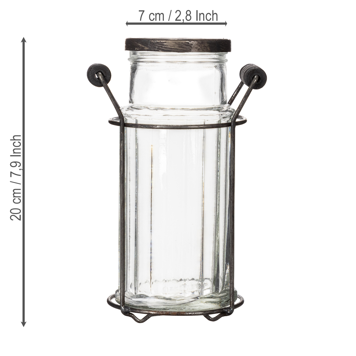 Letar du efter ett tidlöst dekorationsobjekt? Denna glasflaska med metallkorg är inte bara funktionell utan också ett riktigt blickfång. Med sin transparenta yta och rustika metallhållare utstrålar den en charmig vintagekänsla som smälter in i nästan vilken inredning som helst. Oavsett om den står på vardagsrumsbordet, i köket eller som en kreativ vas – den här vasen kommer garanterat att dra till sig blickar! Och vet du vad som är ännu bättre? Hålen i locket inbjuder dig praktiskt taget att elegant visa upp enskilda blommor. På nolltid har du ett litet konstverk.