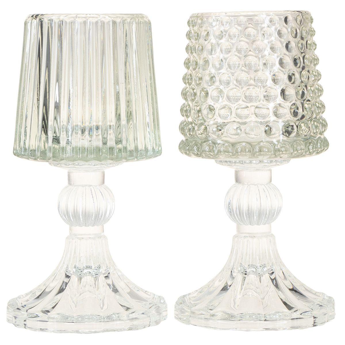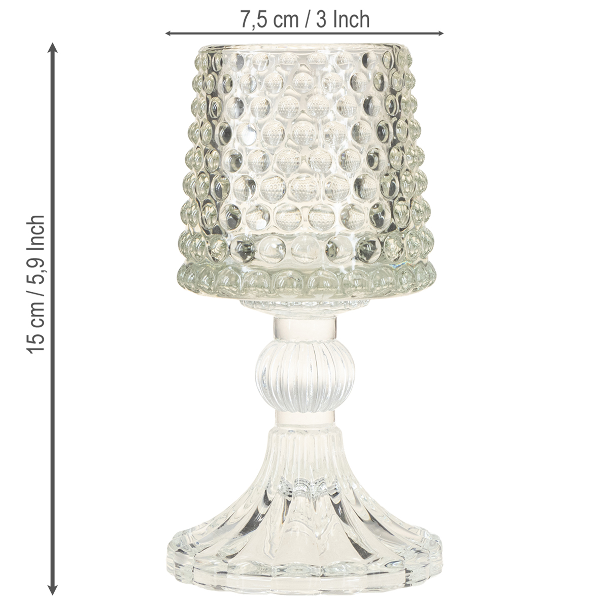 Produktnamn: Glasljushållare med prickar och spår i basen H15cm 2 st