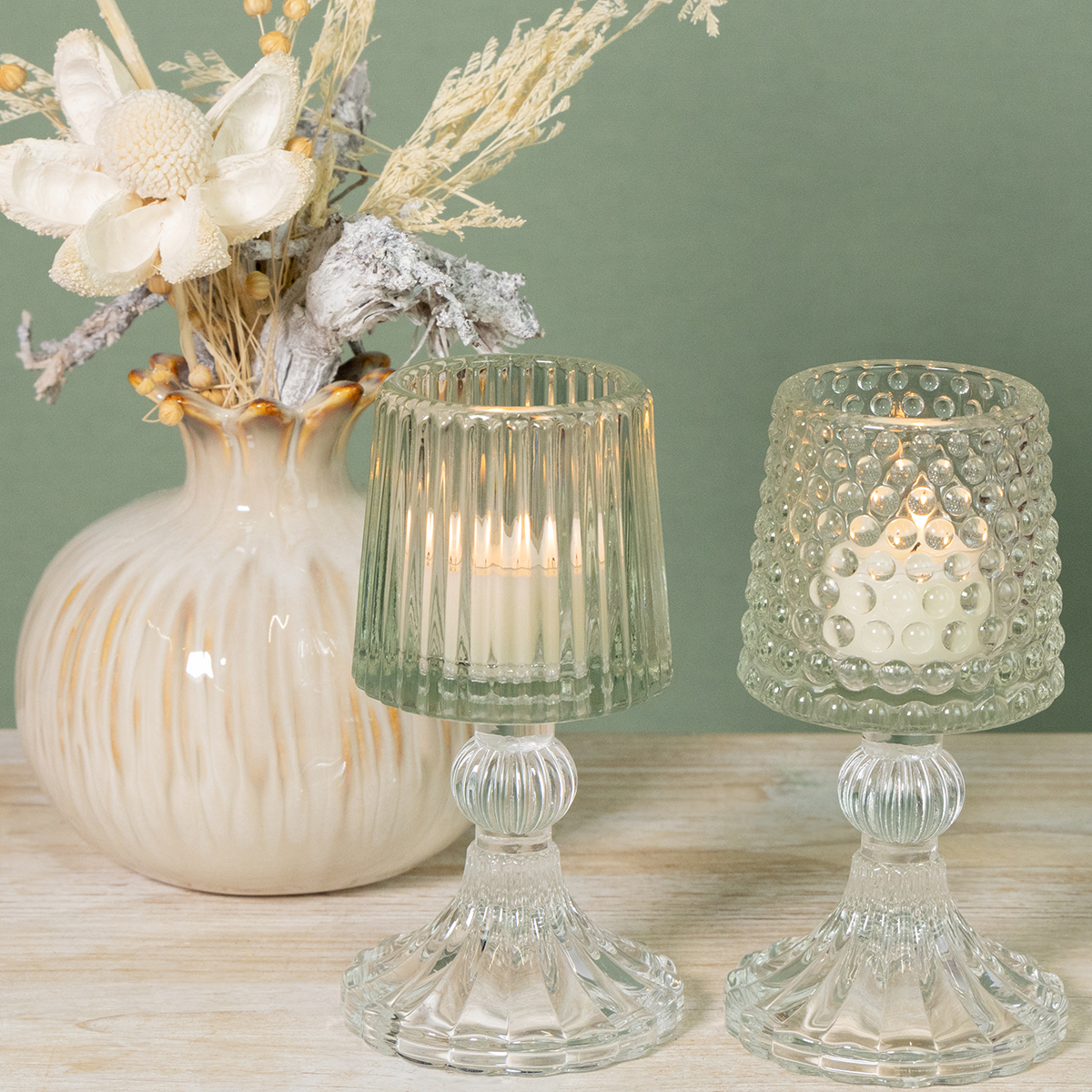 För romantiska kvällar och festliga stunder: Ljusstakesetet i glas