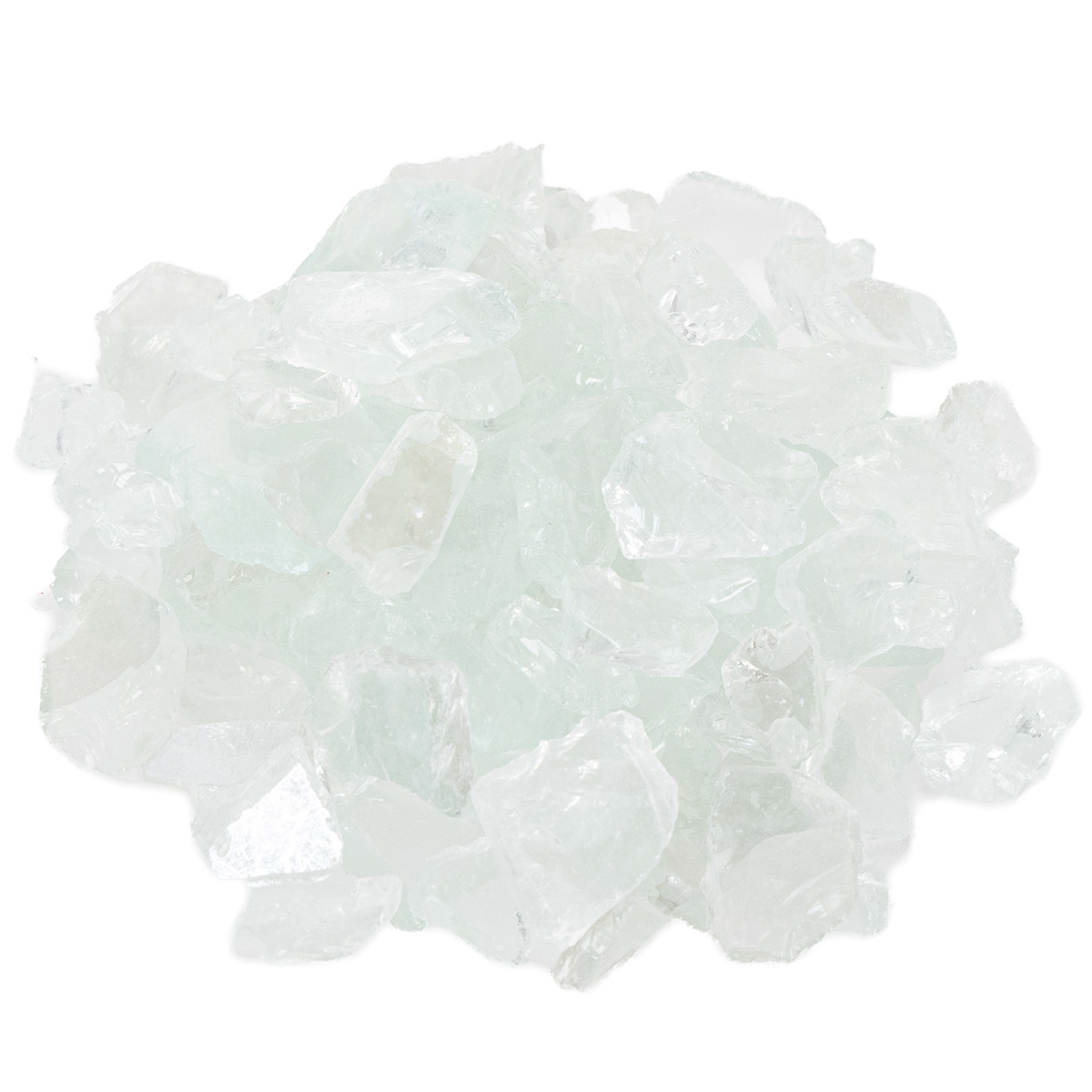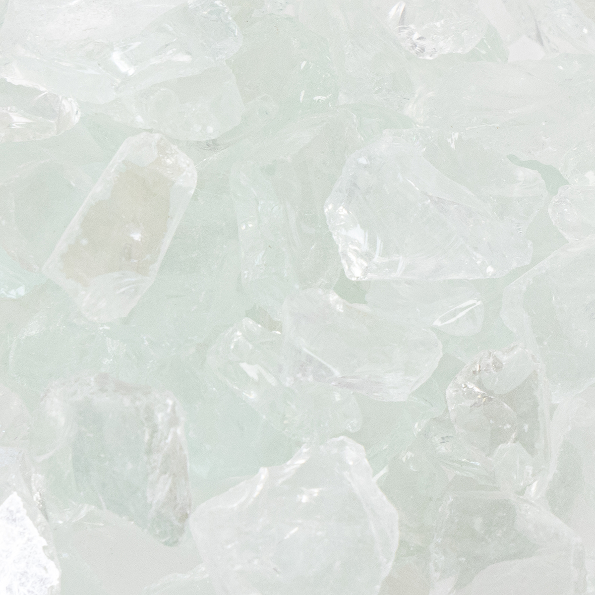 De chica glasstenarna i transparenta naturfärger är ungefär mellan 25 och 40 millimeter stora, även om dessa storlekar kan variera något. Du får 2 kilo av glasgranulatet i en plastpåse.