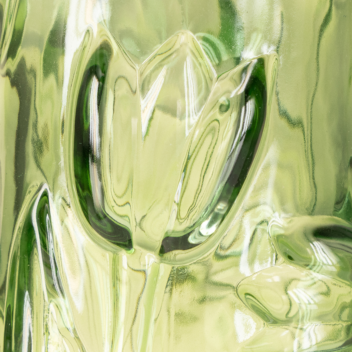Denna 30 cm höga glasvas, med sin klara gröna nyans, fängslar med sin tidlöst eleganta karaktär. Dess unika tulpanmönster ger en touch av naturen direkt in i ditt hem. Kombinationen av glänsande glas och den mjuka gröna tonen ger subtila färgaccenter utan att vara överväldigande. Med en diameter på 16 cm erbjuder vasen gott om plats för frodiga blomsterarrangemang utan att se rörig ut.