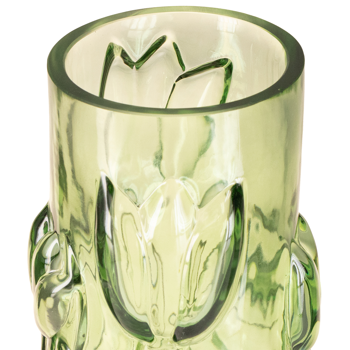Produktnamn: Glasvas med präglad tulpandesign för harmonisk rumsdesign, 30 cm