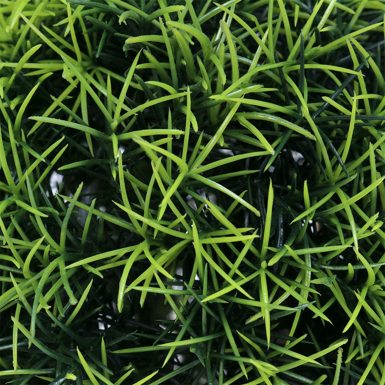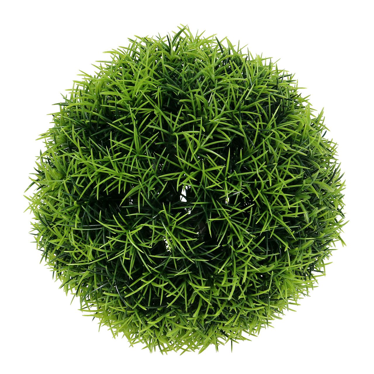 Gräsbollen i grönt har en diameter på cirka 18 centimeter och består av en gallerboll på vilken ett stort antal små tuvor av konstgräs är fästa. På grund av den mörkgröna färgen vid basen och de ljusgröna spetsarna ser gräsbollen väldigt tredimensionell och livlig ut. Det betyder att du kan skapa en hälsosam och glad atmosfär i dina rum med små steg och denna gräsboll.