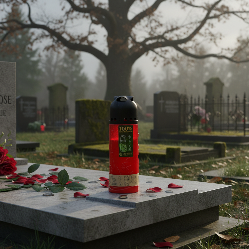 Gravljuset i rött är ett värdigt sätt att minnas sina nära och kära. Ett varmt ljus som utstrålar tystnad och hängivenhet och ger platsen för den sista vilan en speciell ära. Upplev kontemplation med detta högkvalitativa minnesljus som kombinerar tradition med hållbart ansvar.