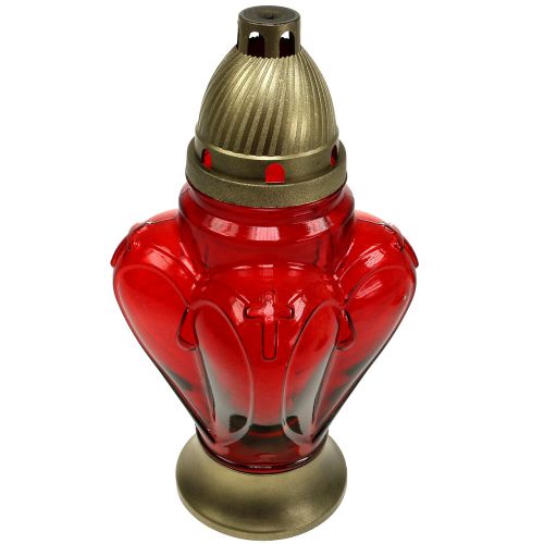 Detta gravljus är inte bara försett med ett hjärtmönster, utan kombinerar även andra eleganta element som är idealiska för att ge tröst till den berövade och samtidigt för att fira den avlidne dessutom små kors som graciöst kompletterar de teardropformade hjärtan. Glaskroppen vilar själv på en gyllene plastbotten, som är i samma färg som det medföljande locket. Detta i sin tur säkerställer att det vita paraffinljuset kan tändas i alla väder.Eftersom du får gravlyktan i en uppsättning av två, varvid en gravlampa är gjord av rött glas och den andra är gjord av färglöst och därmed vitt glas, kan du alltid välja den gravdekoration som passar dig bäst. Dessutom har du också möjligheten att placera de två gravljusen ihop, till exempel på sorgdagarna på död söndag och Alla själars dag 'Day, eller placera dem på olika gravar - var och en i sitt eget arrangemang av grangrenar, sorgband och proteas. Detsamma gäller för en begravningstjänst där du vill använda gravlyktorna för att tända ett tröstande ljus.