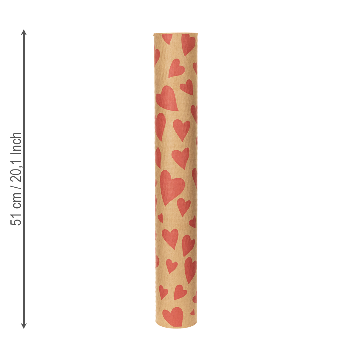 Vårt hållbara presentpapper i varmrött och naturbrunt är mycket mer än bara en enkel förpackning. Med en längd på 25 meter och en bredd på 51 centimeter erbjuder det tillräckligt med material för att slå in presenter i alla storlekar. De charmiga hjärtana i kombination med den naturliga pappersfärgen ger en touch av romantik och stil till vilken present som helst. Oavsett om du letar efter kreativ presentinslagning för blomsterarrangemang, gör-det-själv-projekt eller skyddande inslagningsmaterial – detta papper är otroligt mångsidigt!