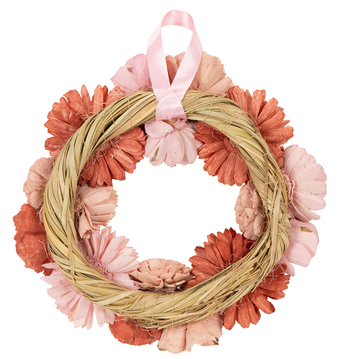 Ge ditt hem en touch av romantik och elegans! Denna hängande rosa blommiga krans skapar en drömlik accent i alla vardagsrum och främjar en harmonisk atmosfär. Oavsett om den visas på vardagsrumsväggen, som mittpunkt på bordet eller till och med som dörrdekoration, skapar de naturliga färgerna och den charmiga designen hos denna dekorativa krans, tillverkad av Sola-trä, en elegant heminredning. Med en diameter på 25 centimeter och sin delikata rosa nyans är kransen perfekt för festliga tillfällen, fester eller bröllop, samt ett charmigt vardagligt accessoar.