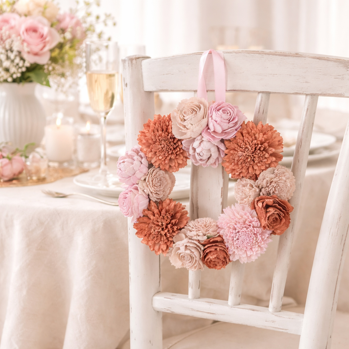 Lättskött och hållbar: Du kan helt enkelt torka av den rosa blomsterkransen med en torr trasa vid behov. Den är idealisk för inomhusbruk och skyddade utomhusområden som täckta balkonger.