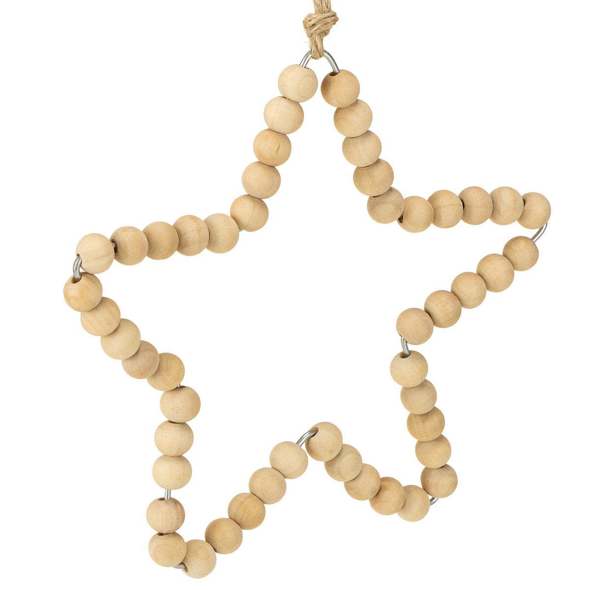 Och de sex dekorativa galgarna dekorerade med träpärlor kan fästas på granen som julgransdekorationer. Du kan också använda julhängena som hängande dekorationer eller som juldekorationer till fönstret. De vackra runda träpärlorna gör att den dekorativa galgen ser lika bra ut från alla håll.