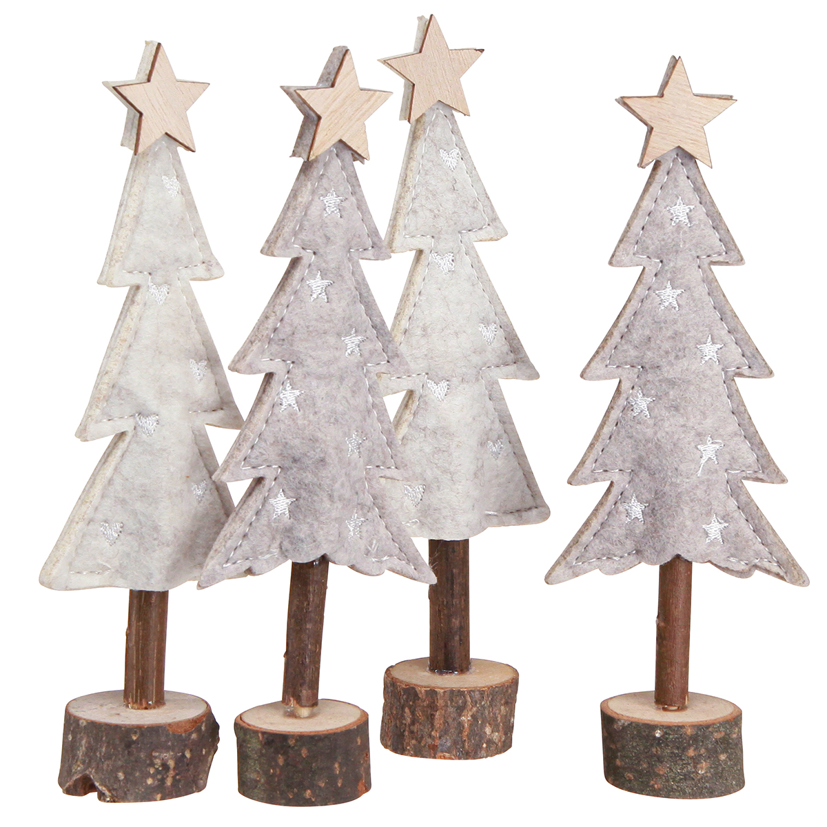 De dekorativa filtträden är mångsidiga och kan placeras på skänkar samt bord för att dekorera rummet festligt. Fyra av dem kan ordnas efter önskemål och erbjuder många dekorationsmöjligheter.