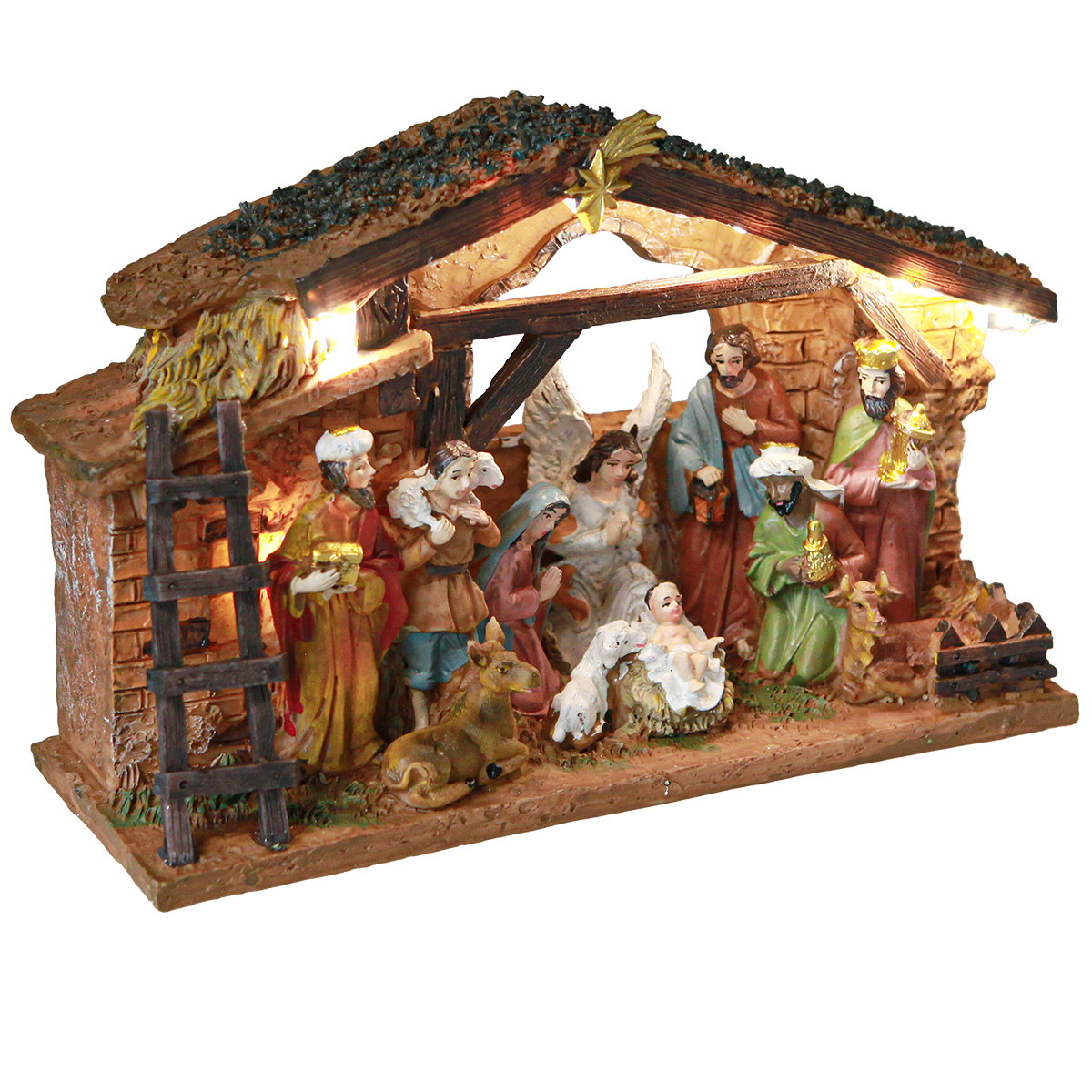 Handmålad julkrubba med figurer och LED-belysning – tradition möter modern elegans