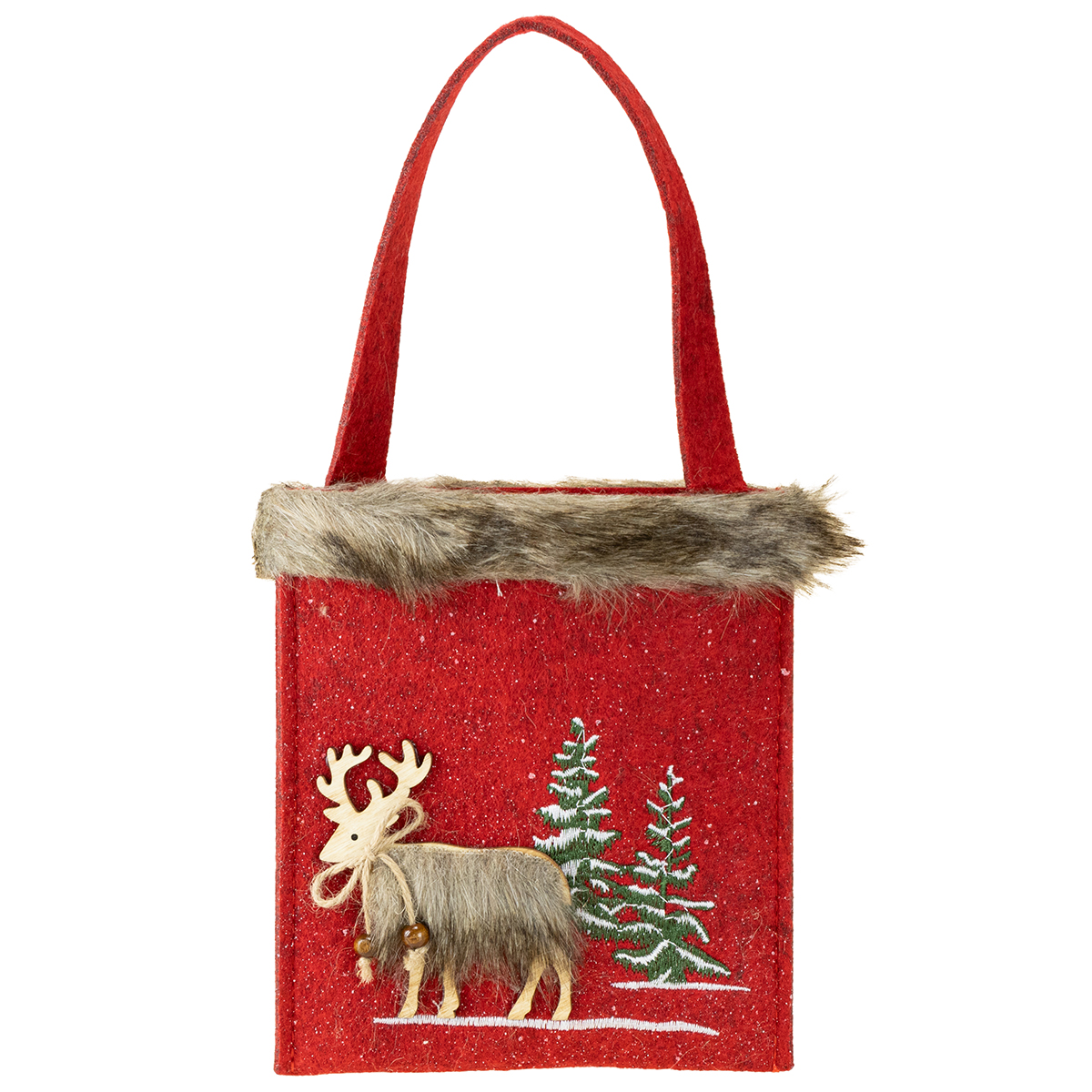 Produktnamn: Julväska röd med päls 15,5cm x 18cm 3 st