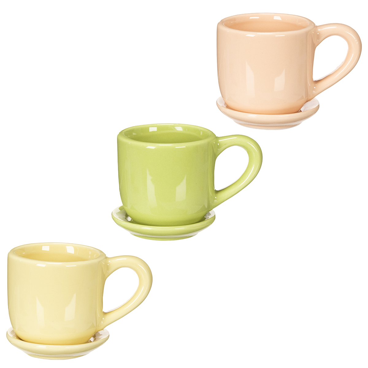 Detta kaffekoppset är inte bara praktiskt utan också exceptionellt mångsidigt. Den livfulla gula, gröna och orangea keramikdesignen ger harmoniska accenter utan att vara överväldigande. Tack vare det högkvalitativa hantverket känns kopparna behagliga vid beröring och lovar lång hållbarhet. Oavsett om de är till en avkopplande helgfrukost eller som ett unikt dekorativt element vid matbordet, är dessa kaffekoppar alltid en snygg följeslagare. Underlägget, som är säkert fäst vid varje kopp, fångar inte bara upp droppar utan säkerställer också stabilitet. Har du någonsin funderat på att använda dem som kreativa krukor för små suckulenter eller örter? Denna idé ger en personlig touch till vilket rum som helst.