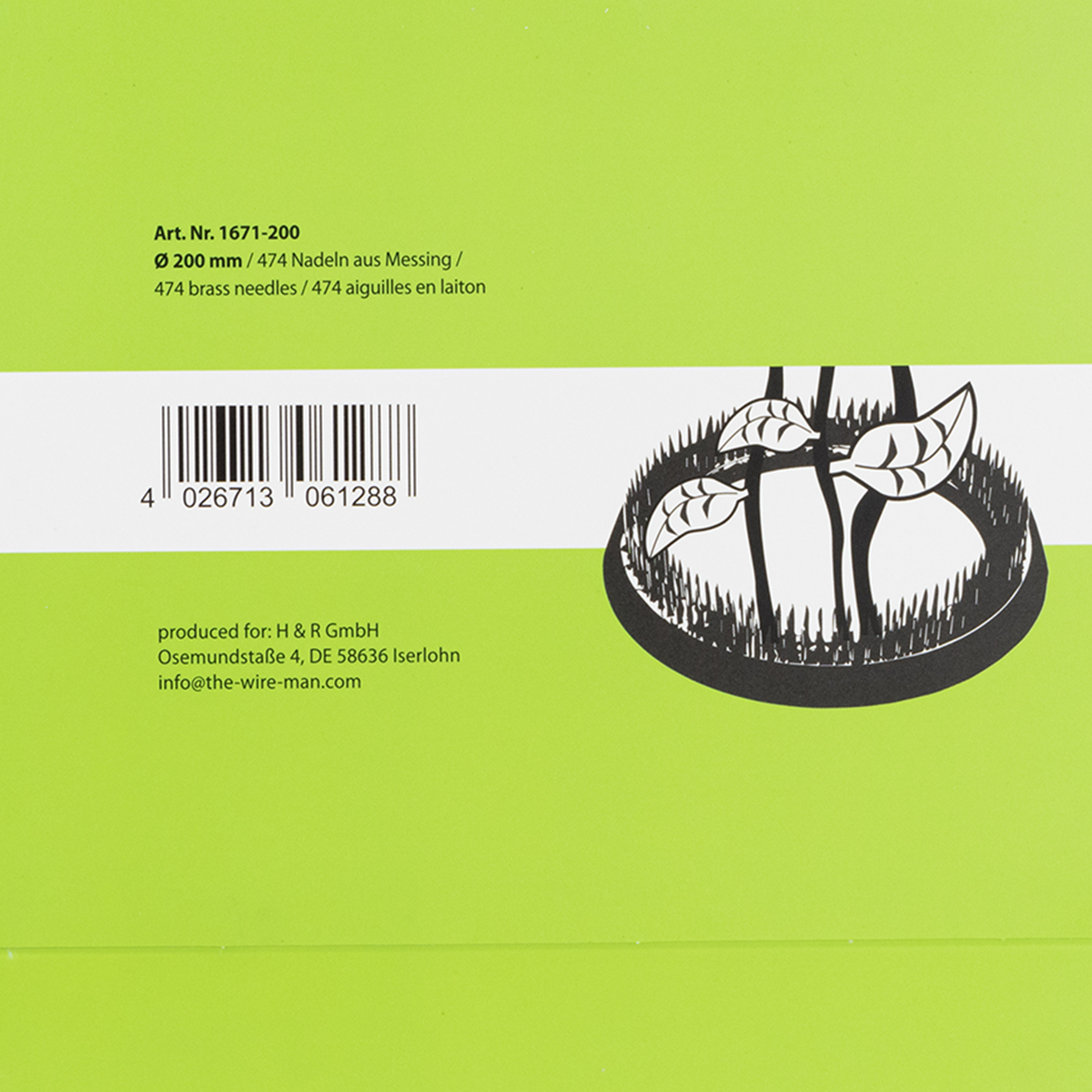 Tack vare sina 474 fina mässingsstift kan du placera och arrangera dina blommor med extrem precision. Den robusta konstruktionen garanterar en särskilt lång livslängd – perfekt för permanenta projekt såväl som för växlande säsongsbetonade dekorationer. Detta gör kenzan till ett hållbart alternativ till den populära blommiga skumringen. Stiftet visar imponerande upp varje enskild blomma, oavsett om du föredrar ett luftigt arrangemang eller ett tätare arrangemang. Oavsett om det gäller färska blommor för festliga tillfällen, romantiska torkade blomsterdekorationer eller moderna konstgjorda blomsterarrangemang – denna kenzan är ett lämpligt tillbehör för alla typer av blommor.