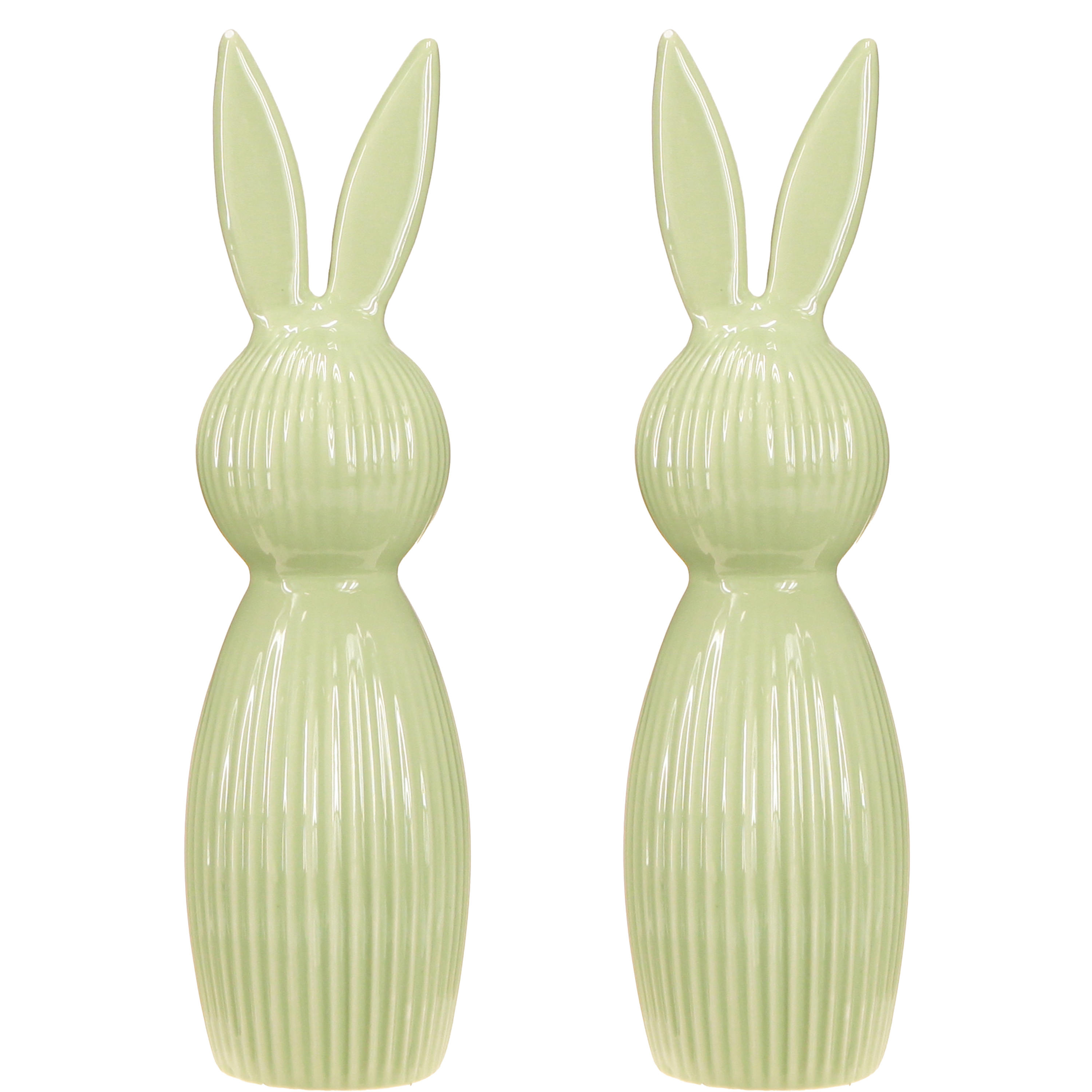 Keramisk påskharefigur i pastellgrönt, bordsdekoration, 22 cm, 2 stycken