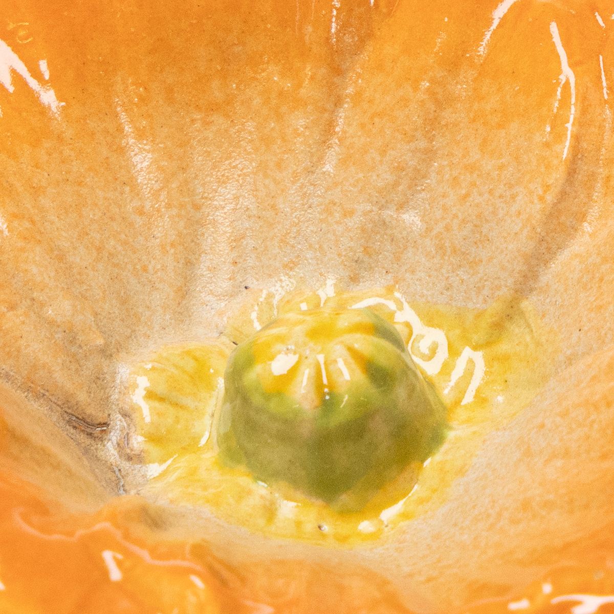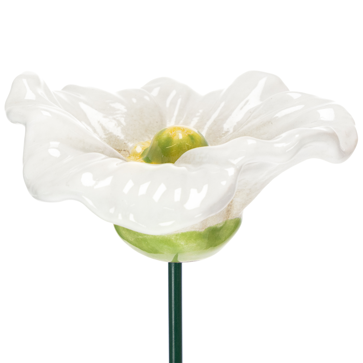 Dessa keramiska vallmoblommor fängslar med sina invecklade detaljer. Varje verk är ett miniatyrkonstverk som skickligt fångar naturens skönhet. Med sina 52 cm höga reser de sig elegant från vilken rabatt som helst utan att vara överväldigande. Blommorna med en diameter på 9 cm finns i livfulla nyanser av orange och klassiskt vitt – en härlig färgkontrast som kommer att förhöja ditt trädgårdslandskap. Oavsett om du placerar dem individuellt i rabatten eller arrangerar dem parvis, kommer de att ge grace och karaktär till ditt utomhusutrymme.