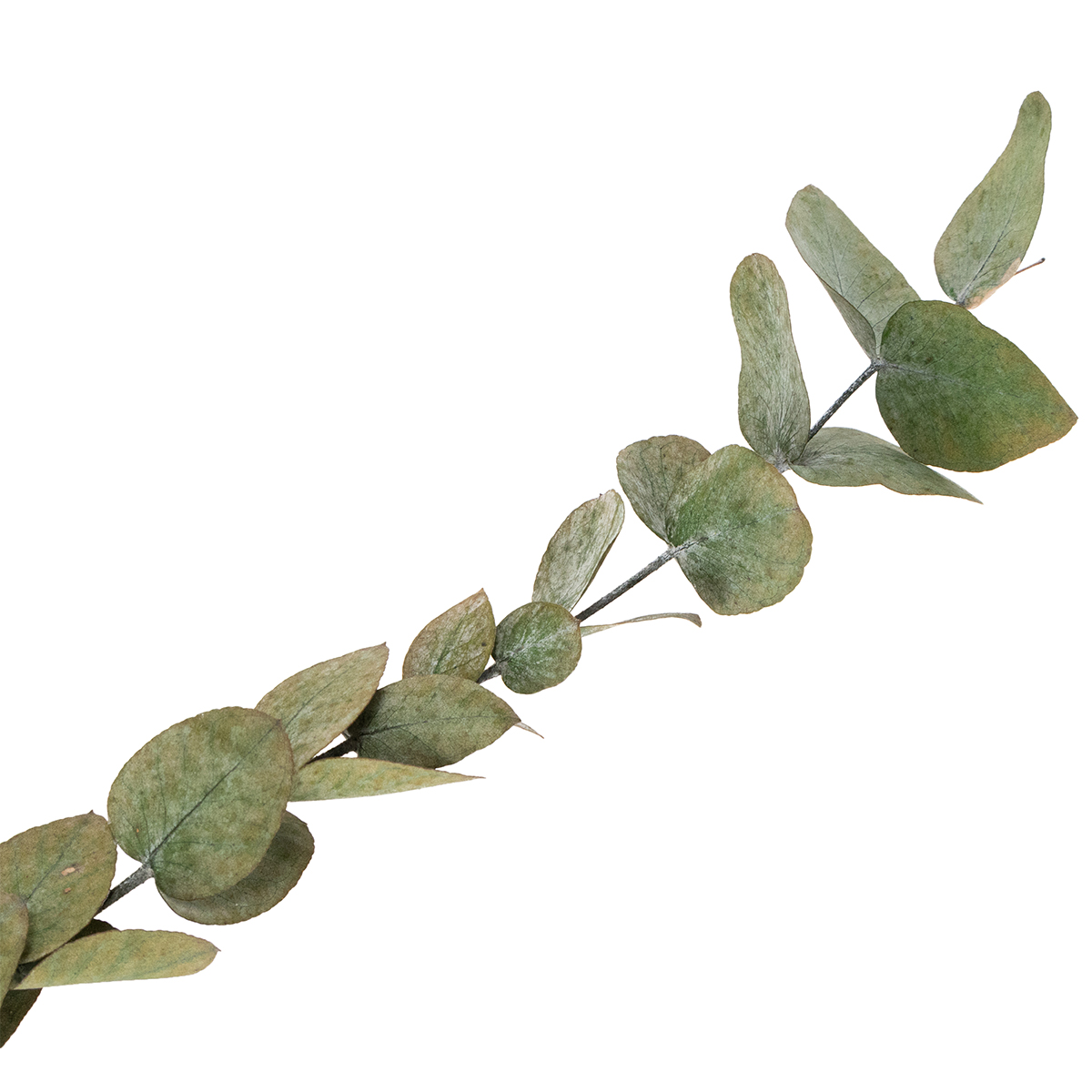 Den konserverade eukalyptusen, med sina gröna blad som klamrar sig fast vid grenarna, ser ut som om den nyplockats från trädet! En skonsam process har bevarat den dekorativa grenens naturliga utseende. Bladen på denna eukalyptusväxt är mörkgröna med den typiska vitaktiga lystern – helt enkelt underbar, tidlöst modern torkad blomsterdekoration!