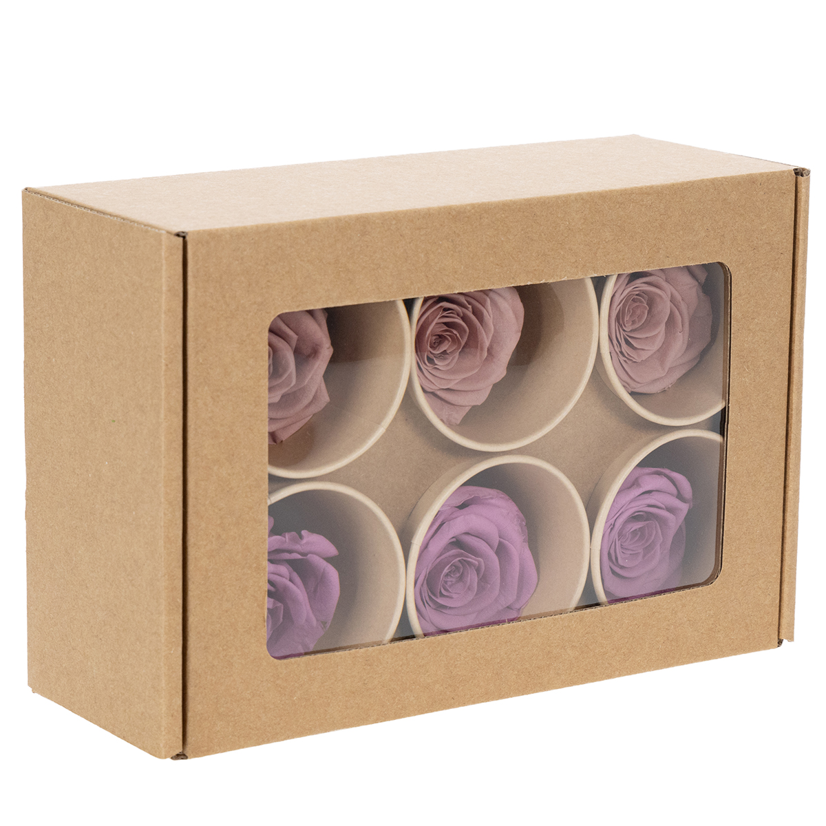 - Antal: 6 konserverade rosenhuvuden