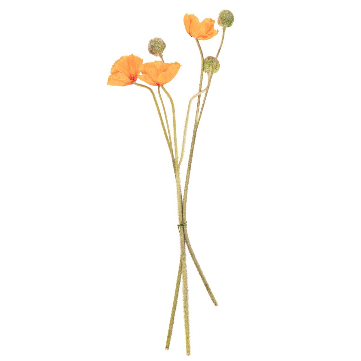 Denna konstgjorda vallmo-set består av tre fina stjälkar vars eleganta design smälter naturligt och diskret in i alla miljöer. Varje stjälk har en minutiöst detaljerad vallmoblomma och en charmig knopp. Med sina imponerande 75 cm är de långa stjälkarna perfekta för höga vaser eller som en del av konstnärliga arrangemang. Den högkvalitativa blandningen av polyester och plast säkerställer ett realistiskt utseende och känsla.