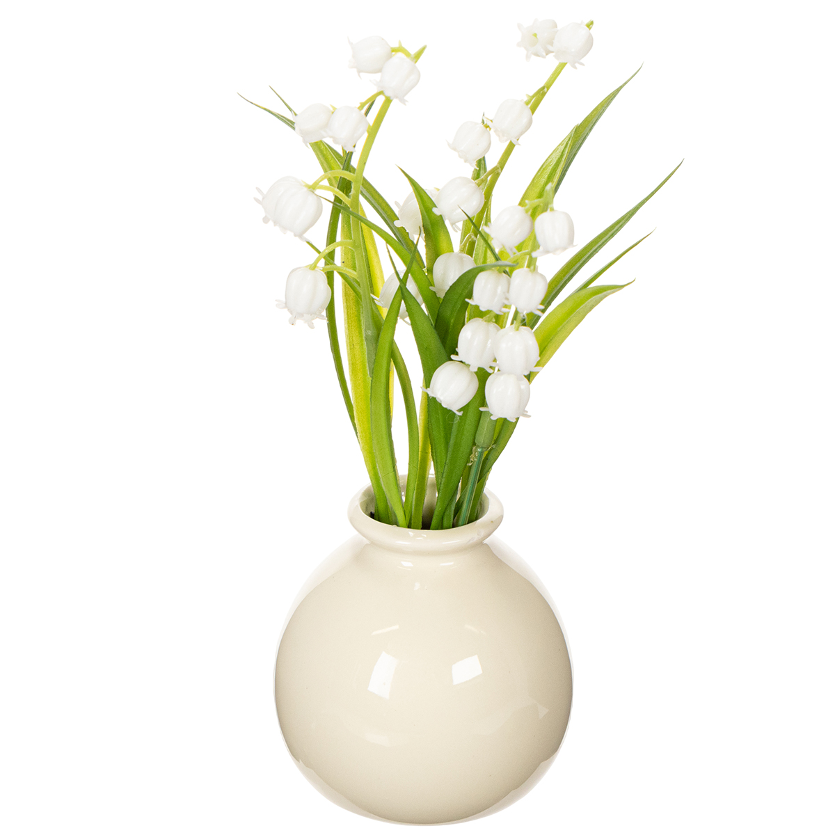 Konstgjord bukett med liljekonvaljer i en klassisk vas, perfekt för heminredning, 20 cm