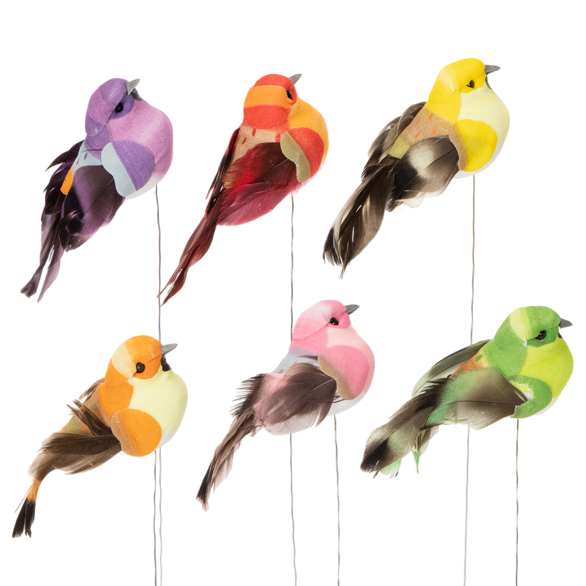 Längtar du efter den där vårkänslan som varar året runt? Då är dessa konstgjorda dekorationsfåglar med tråd precis vad du behöver! Med sina underbara färger och livfulla utseende ger de liv åt vilken dekoration som helst. Oavsett om de är i en blomsterkrans, på ett arrangemang eller som höjdpunkten på din bordsdukning – de passar in överallt. Och det bästa: Varje fågel har designats med kärlek till detaljer för att se så söt ut som möjligt. Du behöver inte välja, för varje förpackning innehåller 12 olika fåglar i strålande färger – lika mångsidiga som naturen själv. Oavsett om det är för säsongsbetonade arrangemang, pysselprojekt eller som söta accenter för fönster och dörrar, är dessa små fåglar perfekta dekorativa figurer för att göra vilket arrangemang som helst mer livfullt.