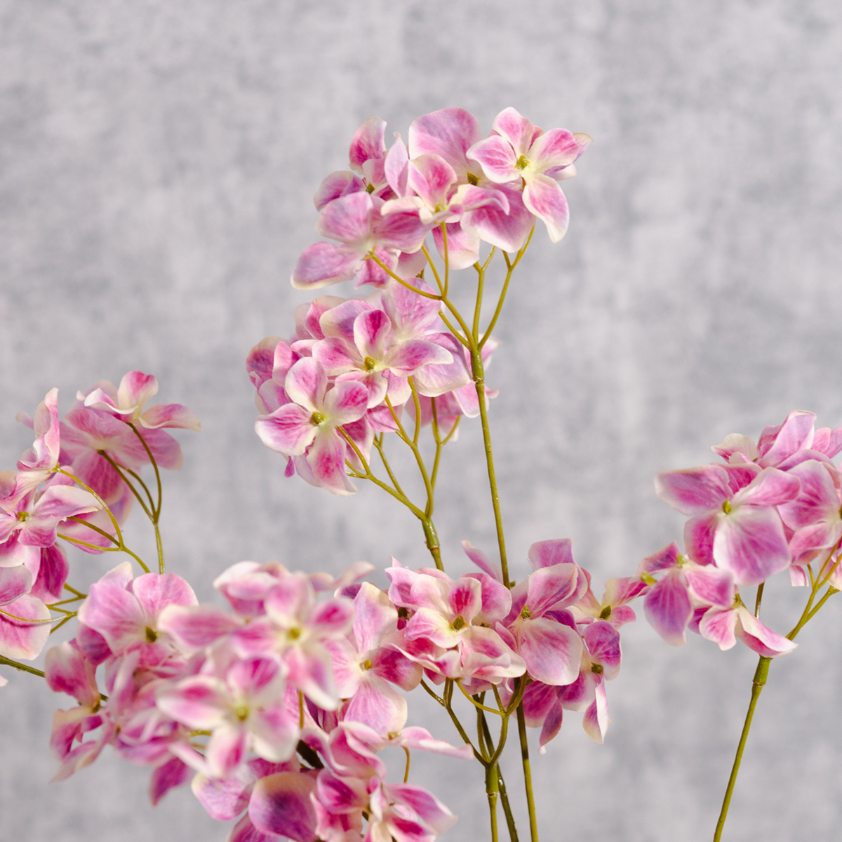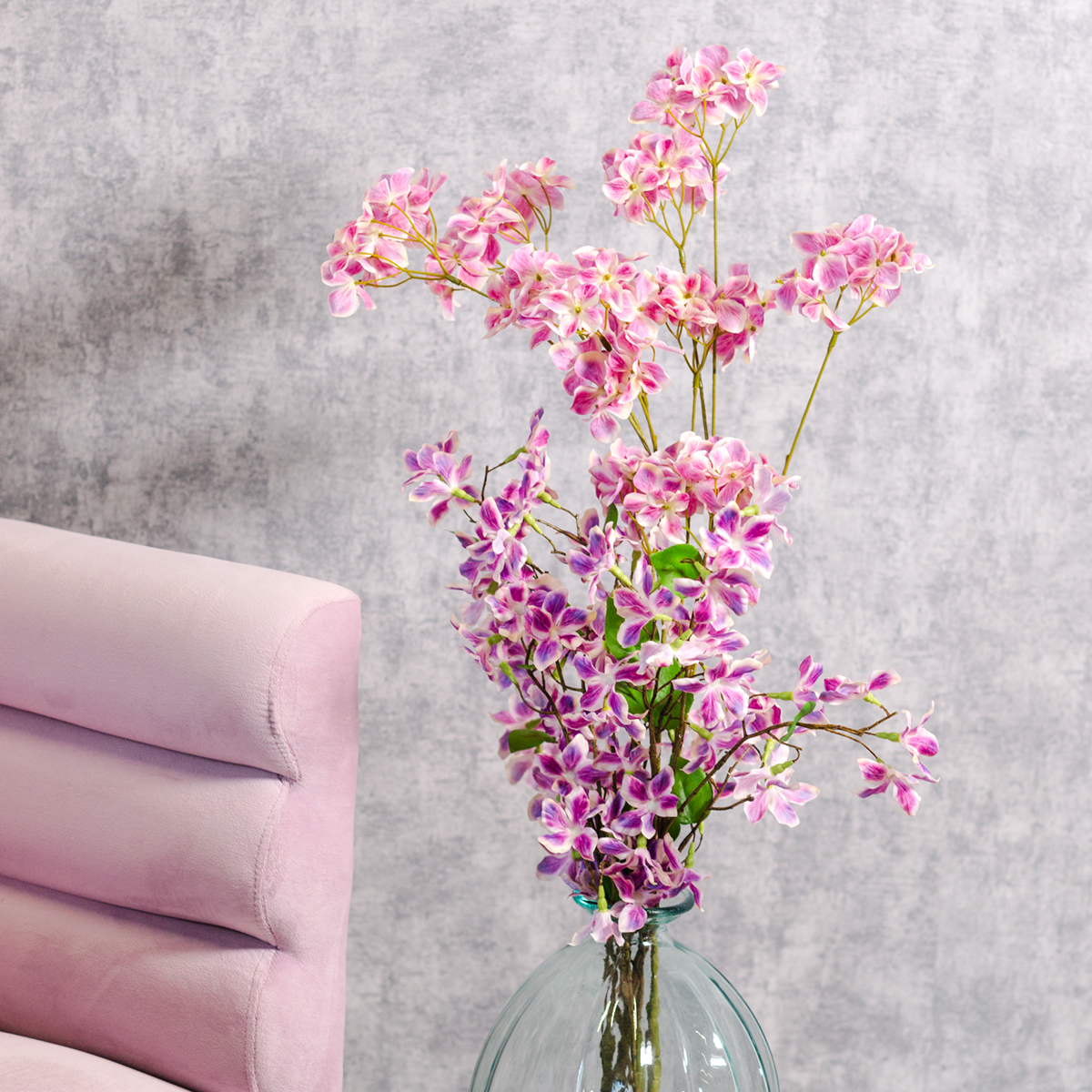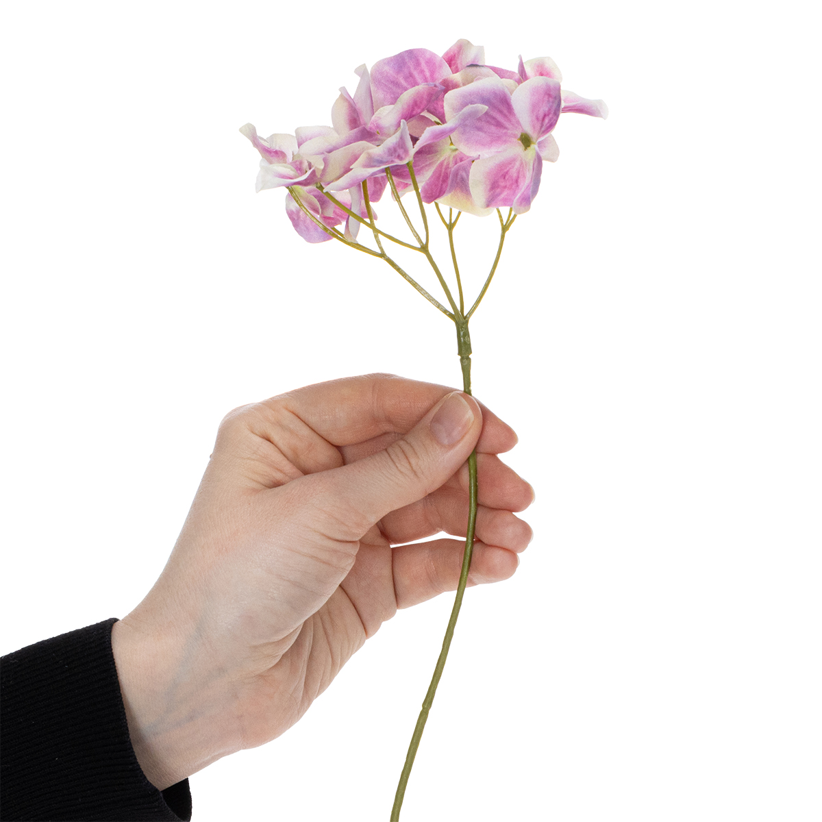 Denna konstgjorda hortensia är imponerande på alla sätt – från sitt förvånansvärt realistiska utseende till sin högkvalitativa konstruktion av polyester och plast. Varje blomma ser så naturtrogna ut att du nästan kan känna doften av riktiga blommor. Med en längd på 110 cm och en diameter på cirka 40 cm smälter den elegant in i vilken inredning som helst utan att vara påträngande. Den varma rosa nyansen harmoniserar vackert med romantiska inredningsstilar som vintage eller shabby chic, men ser också fantastisk ut i moderna eller minimalistiska miljöer. Letar du efter inspiration? Kombinera vår hortensia med vita orkidéer eller fina eukalyptusgrenar för ett drömlikt bordsarrangemang. Eller placera grenarna individuellt i enkla glasvaser för att ge en touch av elegans till byråer och fönsterbrädor.