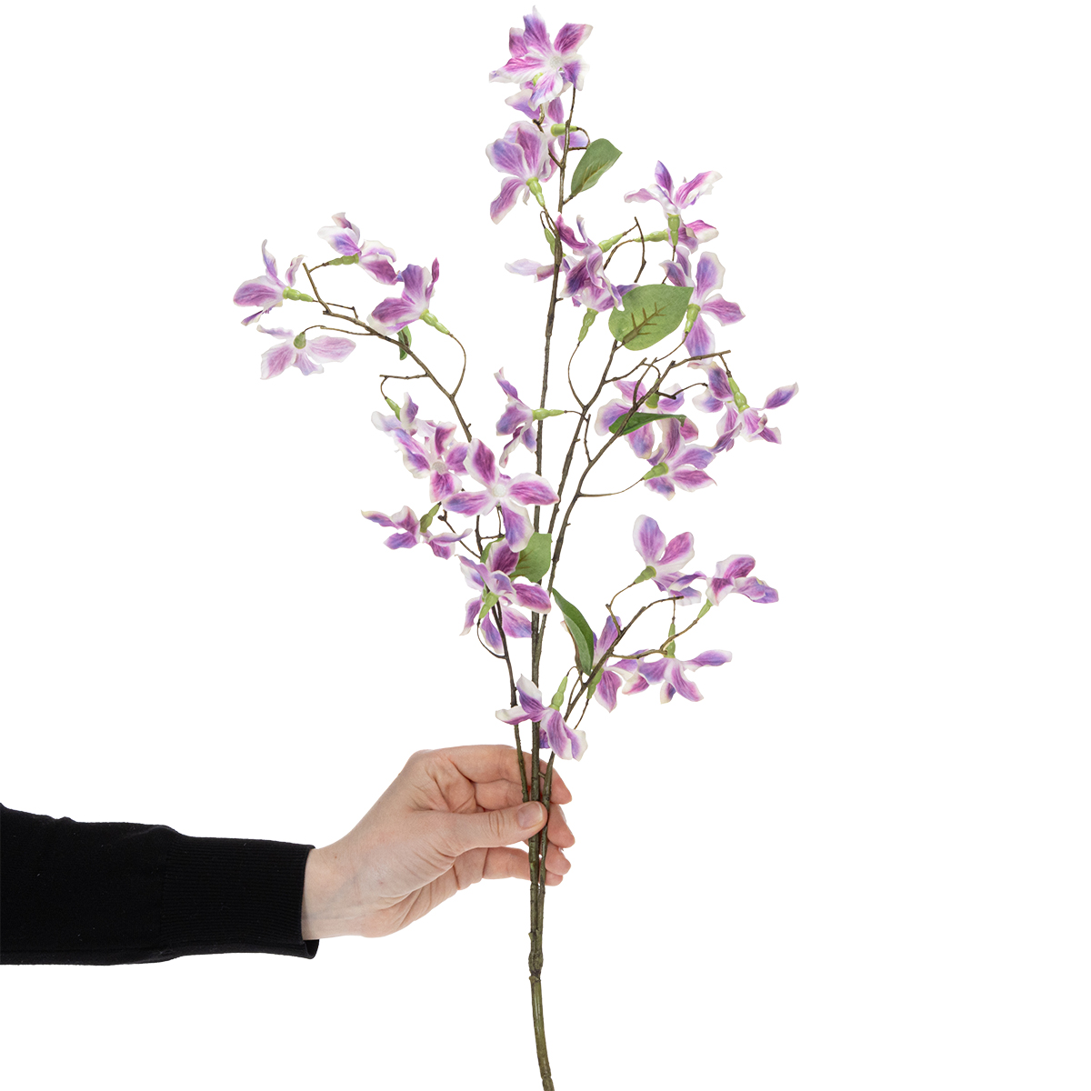 Älskar du att försköna ditt hem med eleganta accenter? Då kommer du att bli förtrollad av vår konstgjorda klematiskvist i delikat syren! Denna konstgjorda blomma är perfekt för alla som uppskattar blommande elegans men inte har tid för skötsel och vattning. Klematiskvisten kombinerar tidlös skönhet med lång hållbarhet – perfekt som blickfång på matbordet, i en elegant vas i sovrummet eller som en extravagant dekoration på kontoret.