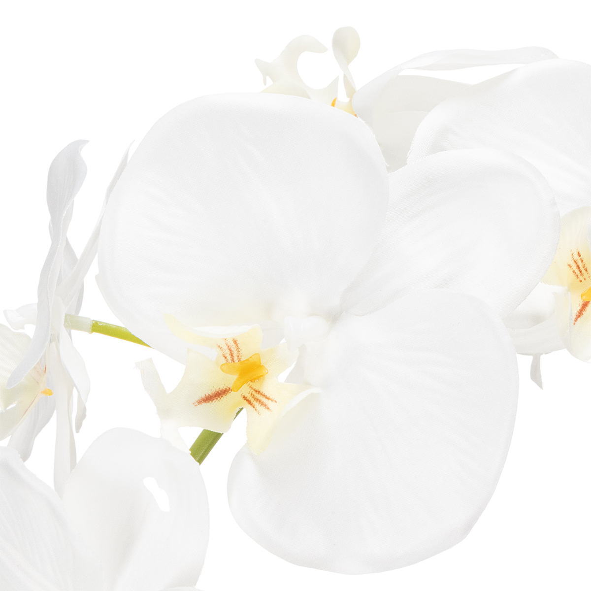 Speciellt i stressiga miljöer, som ett kontorsbord eller ett mötesrum, utvecklar orkidén sin speciella effekt. Dess strålande vita färg ger lugn och harmoni till rummet, medan dess realistiska utseende för in naturen utan behov av vattning eller placering. Oavsett om den är på en hylla, i hallen eller till och med i badrummet – denna orkidé ger en speciell touch överallt.