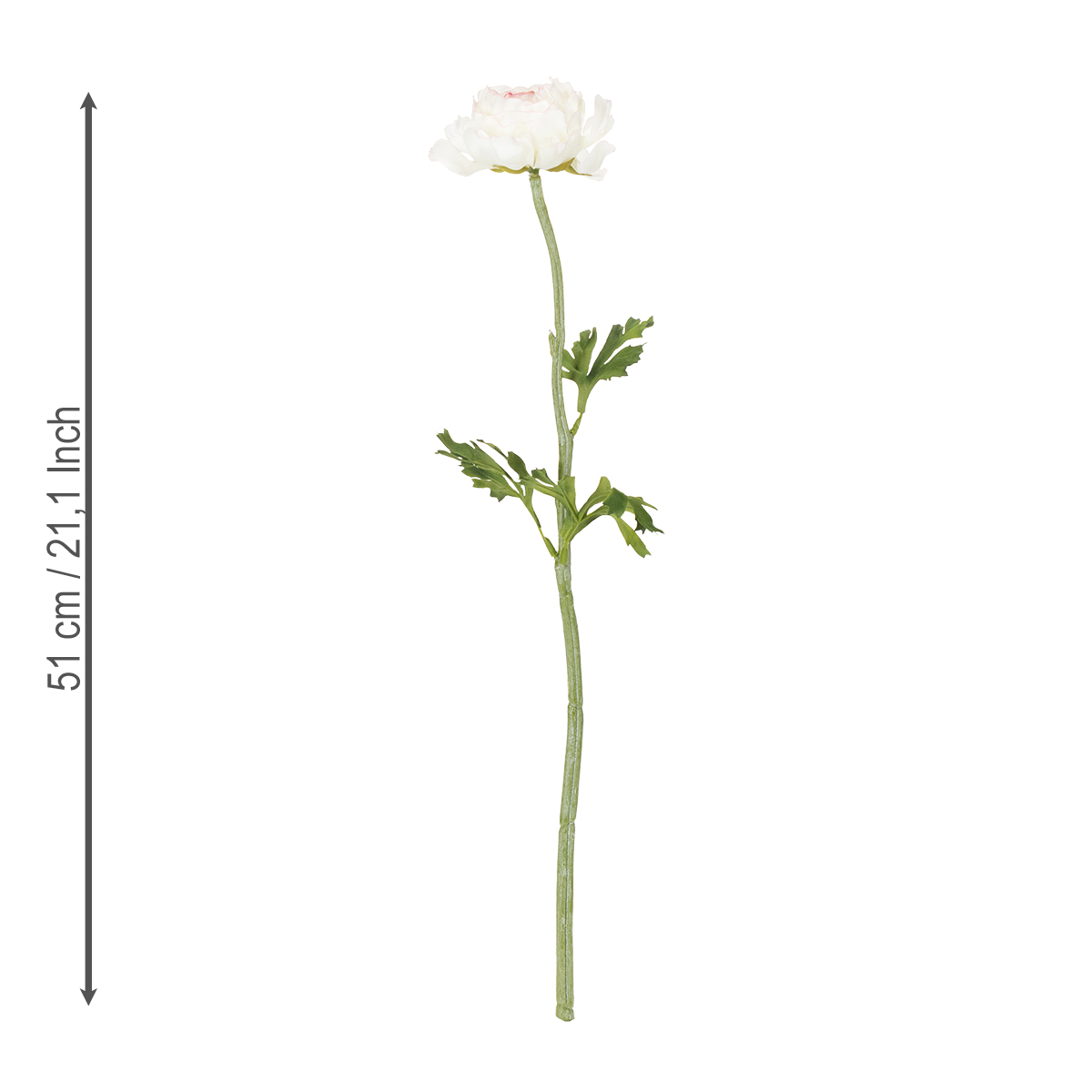 Denna konstgjorda ranunkel är en vinnare rakt igenom: Med en längd på 51 cm och en smal stjälk erbjuder den mångsidiga möjligheter att släppa lös din kreativitet. De fina blommorna av högkvalitativ siden och de invecklade plastbladen ser så realistiska ut att du måste titta två gånger för att inse att den är konstgjord. Tack vare sin hållbarhet är denna konstgjorda blomma särskilt lämplig för personer som älskar synen av blommor men inte vill ha besväret med regelbunden blomsterskötsel.