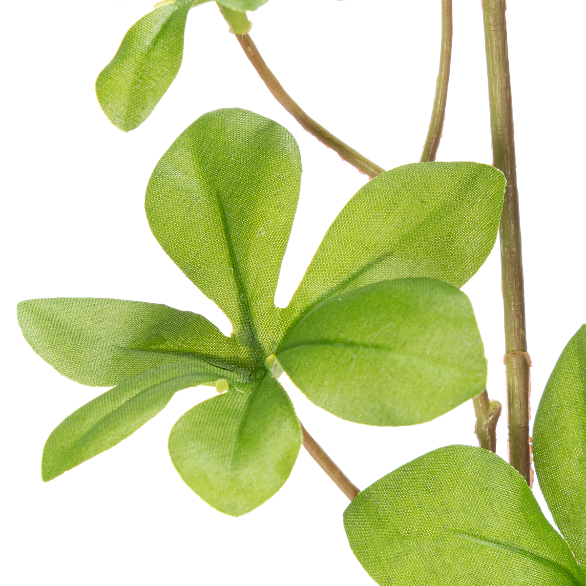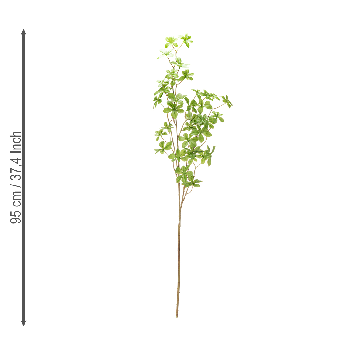 Med sina imponerande 95 cm i höjd är denna konstgjorda krukväxtgren ett riktigt blickfång – oavsett om den visas individuellt i en enkel vas eller som en del av ett större arrangemang. Bladens mjuka gröna toner förmedlar en naturlig fräschör som omedelbart återupplivar vilken miljö som helst. Perfekt för vardagsrumsinredning, men också ett elegant tillskott till kontor och skyltfönster. Alla som letar efter modern design med en touch av urban djungel kommer att älska denna konstgjorda gren.