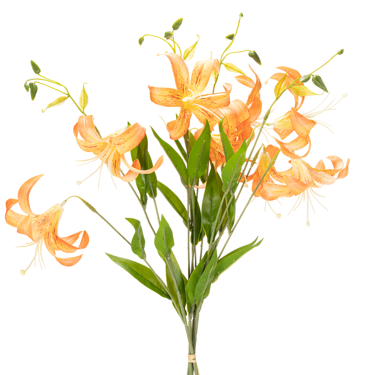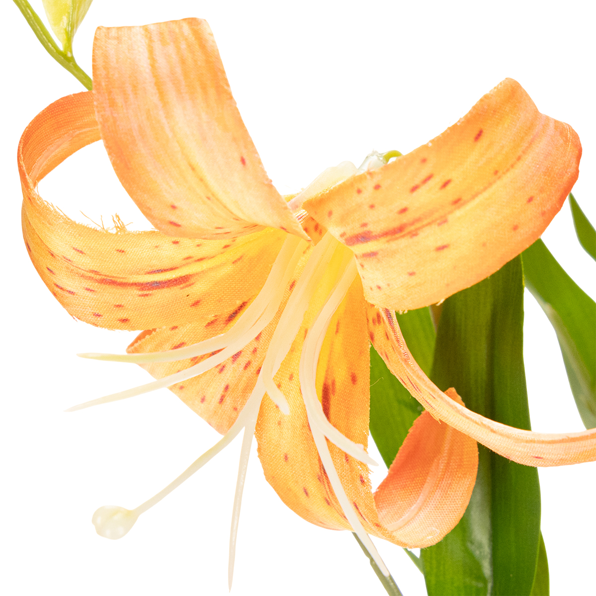 Letar du efter eleganta detaljer till ditt bröllop eller evenemang? Våra högkvalitativa konstgjorda liljor erbjuder den perfekta kombinationen av naturlig skönhet och praktisk hållbarhet. Dessa konstgjorda liljor imponerar med sitt naturtrogna utseende och sina fina apelsinblommor – en riktig blickfångare! Med en höjd på 77 cm kan dessa konstgjorda blommor enkelt integreras i fantastiska blomsterarrangemang, vare sig det är som en mittpunkt på ett bord, i en stor golvvas eller som en del av en frodig blomsterdekoration. Oavsett om det är till ett bröllop, en födelsedag eller ett företagsevenemang kommer de att förvandla vilket rum som helst på ett ögonblick. De är också ett fantastiskt val som presenter eller bordsdekorationer. Undrar du om de ser så äkta ut? Absolut! Deras kvalitet och noggrannhet i detaljerna gör att de ser nästan nyplockade ut. Prova dem och ge din vardag en touch av elegans!