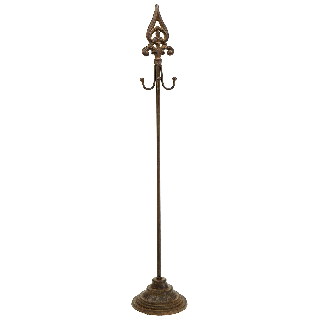 Det distinkta kransstället ser ut som ett fynd från äldre tider. Stativet gjordes konstnärligt av järn och försett med en elegant antik patina. Överst finns en fleur-de-lilja, som också kallas den franska liljan, som ett dekorativt element, eftersom det var symbolen för den franska monarkin. Det finns fyra krokar som du kan fästa dina kransar och dekorationer på.