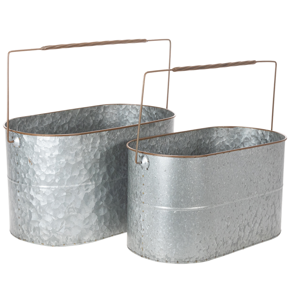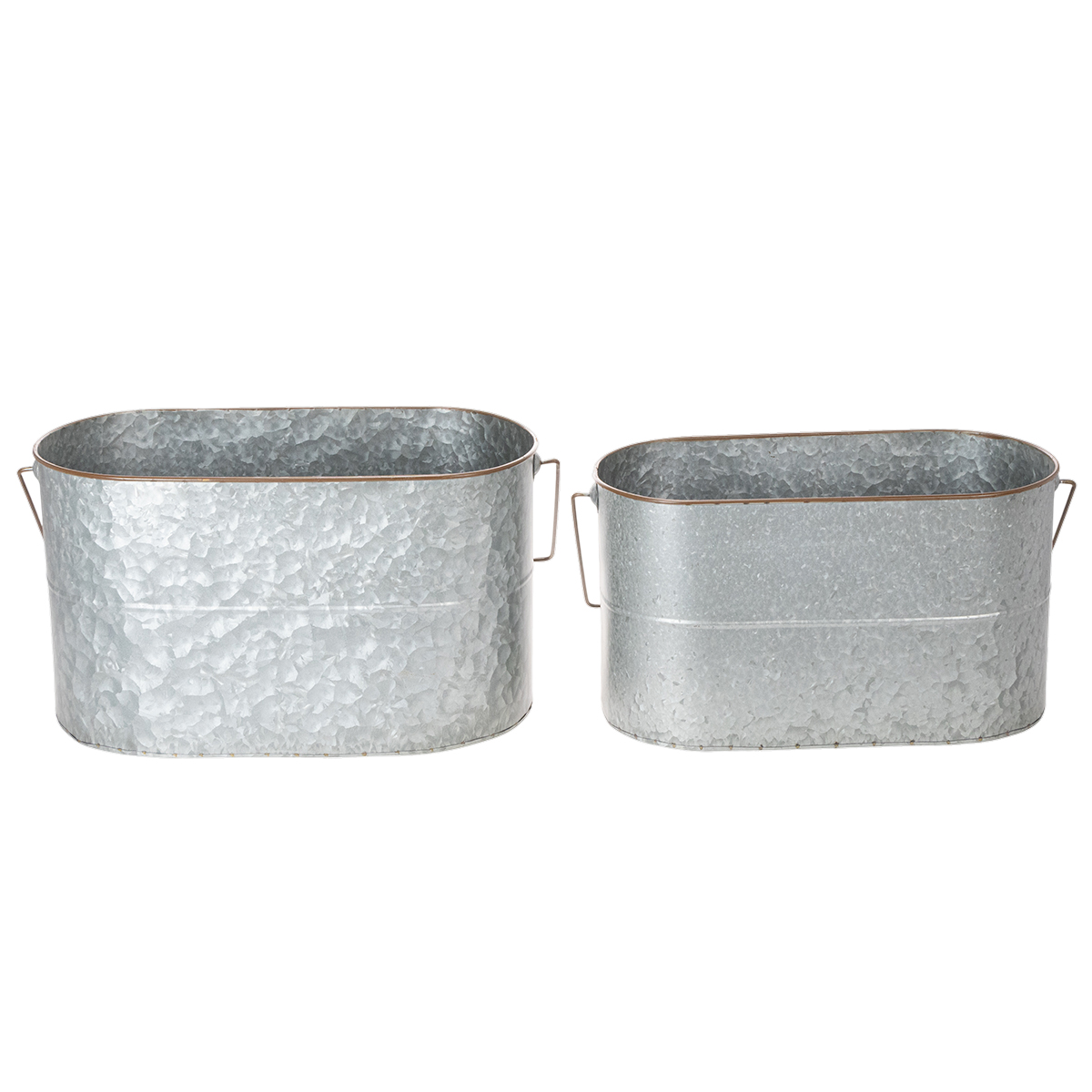 Växtskålarna med handtag är högkvalitativa metallkrukor som kan användas till många tillfällen. De avlånga metallhinkarna i silver med brun kant är verkligen jättefina som plantering eller cachepott!