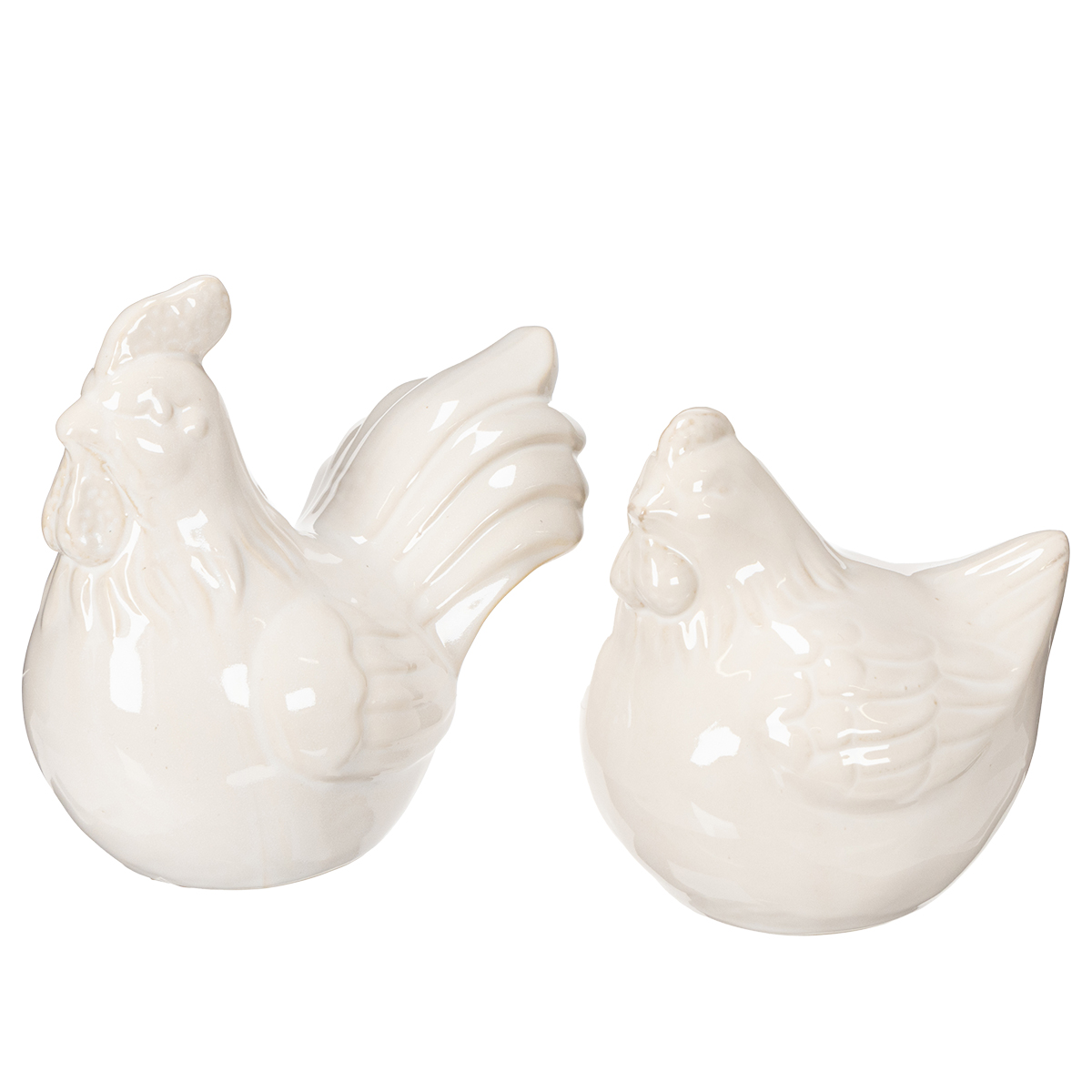 Kycklingfigur, glansig glaserad, för modern heminredning, 17 cm, 2 stycken