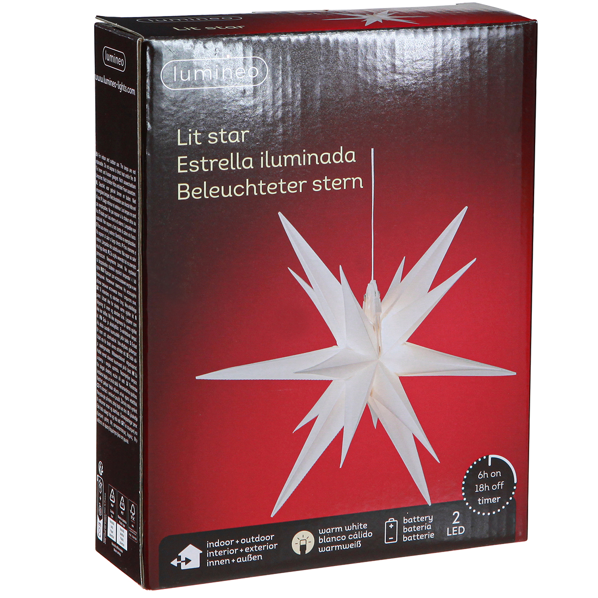 LED-stjärna 3D vit timerbatteri utvändigt Ø30cm H74cm