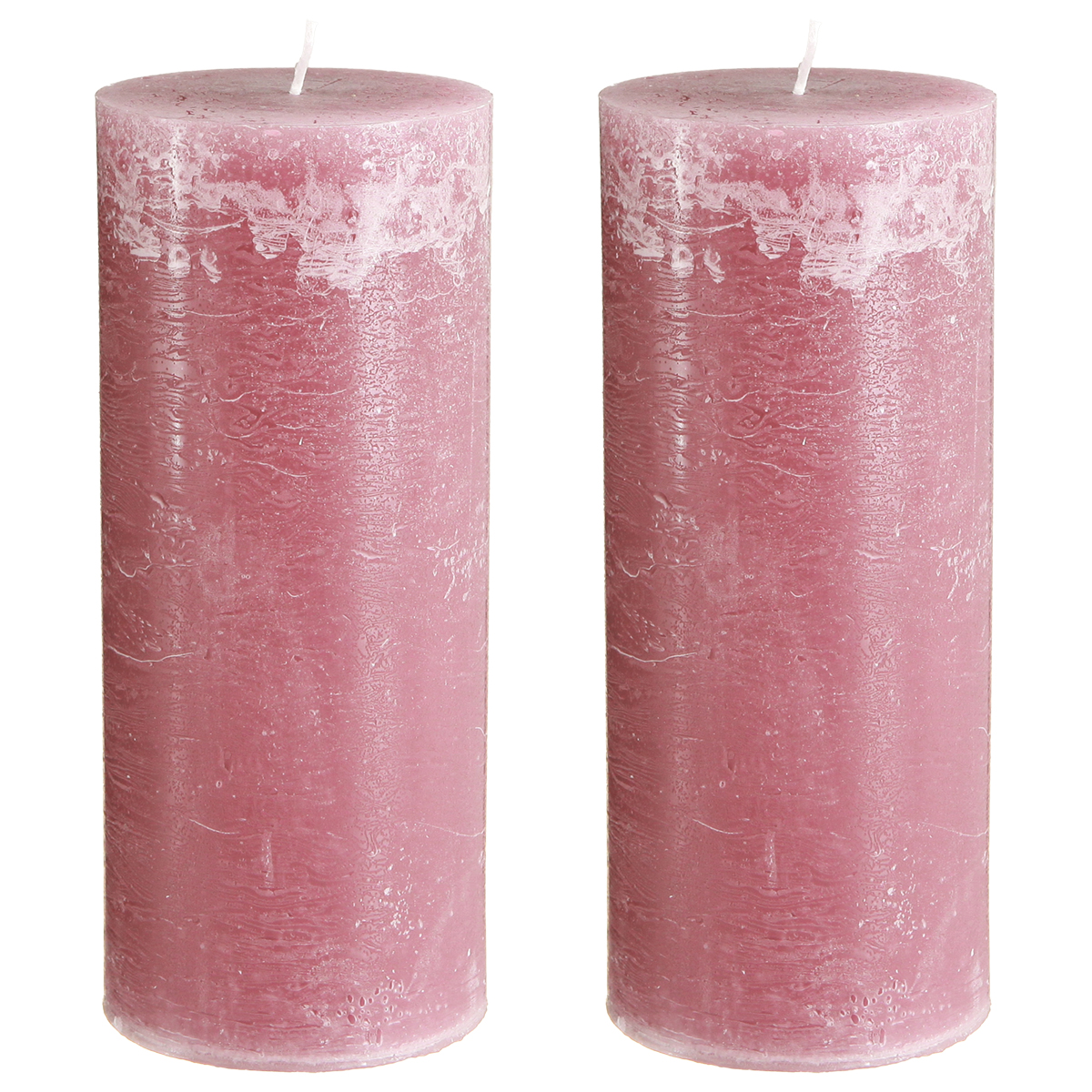 Ljus i rosa pelarljus gammalrosa 85×200mm 2 st
