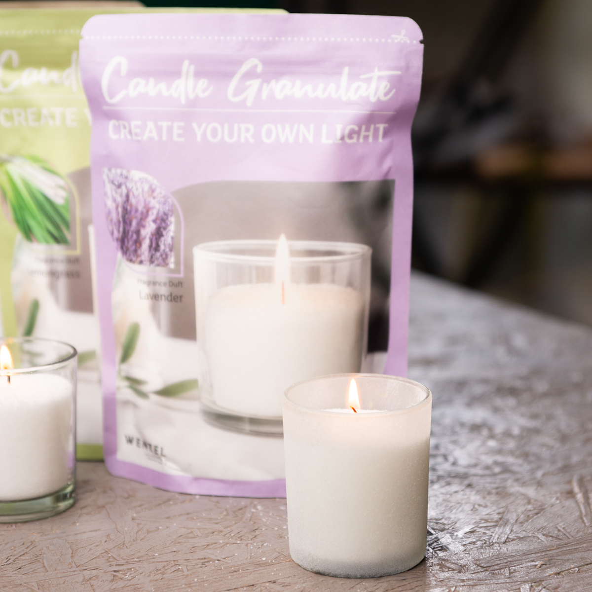 Hantverksentusiaster, kreativa hjärnor och florister uppskattar särskilt den enkla hanteringen och kvalitetskomponenterna som säkerställer en lång, sotfri bränning. Låt dig inspireras och njut av tillfredsställelsen av att skapa något väldigt personligt och unikt med vaxgranulat för ljus.