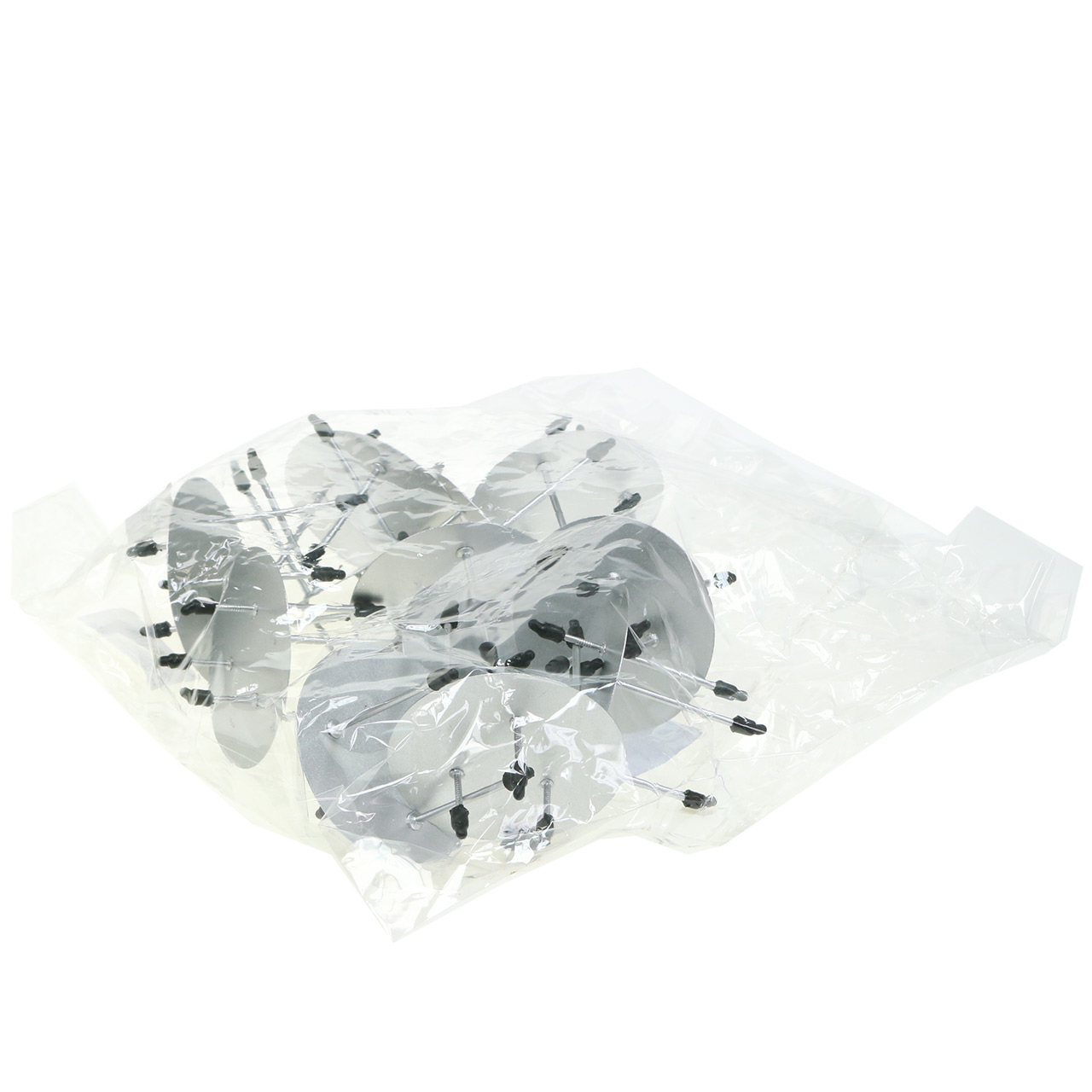 VIANA silverljushållare har en total höjd på 7,5 centimeter och en diameter på cirka 6,5 centimeter. Ljusdornen är ungefär 2,5 centimeter, medan pluggstiften är ungefär 5 centimeter långa. Paketet innehåller 12 av dessa vackra ljusstakar för blommor.