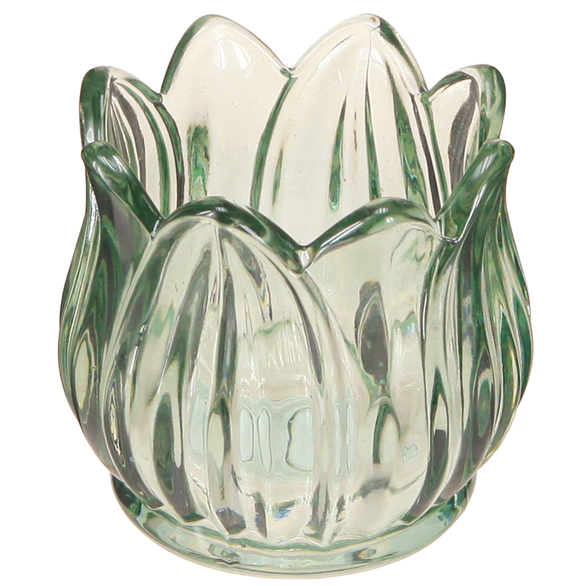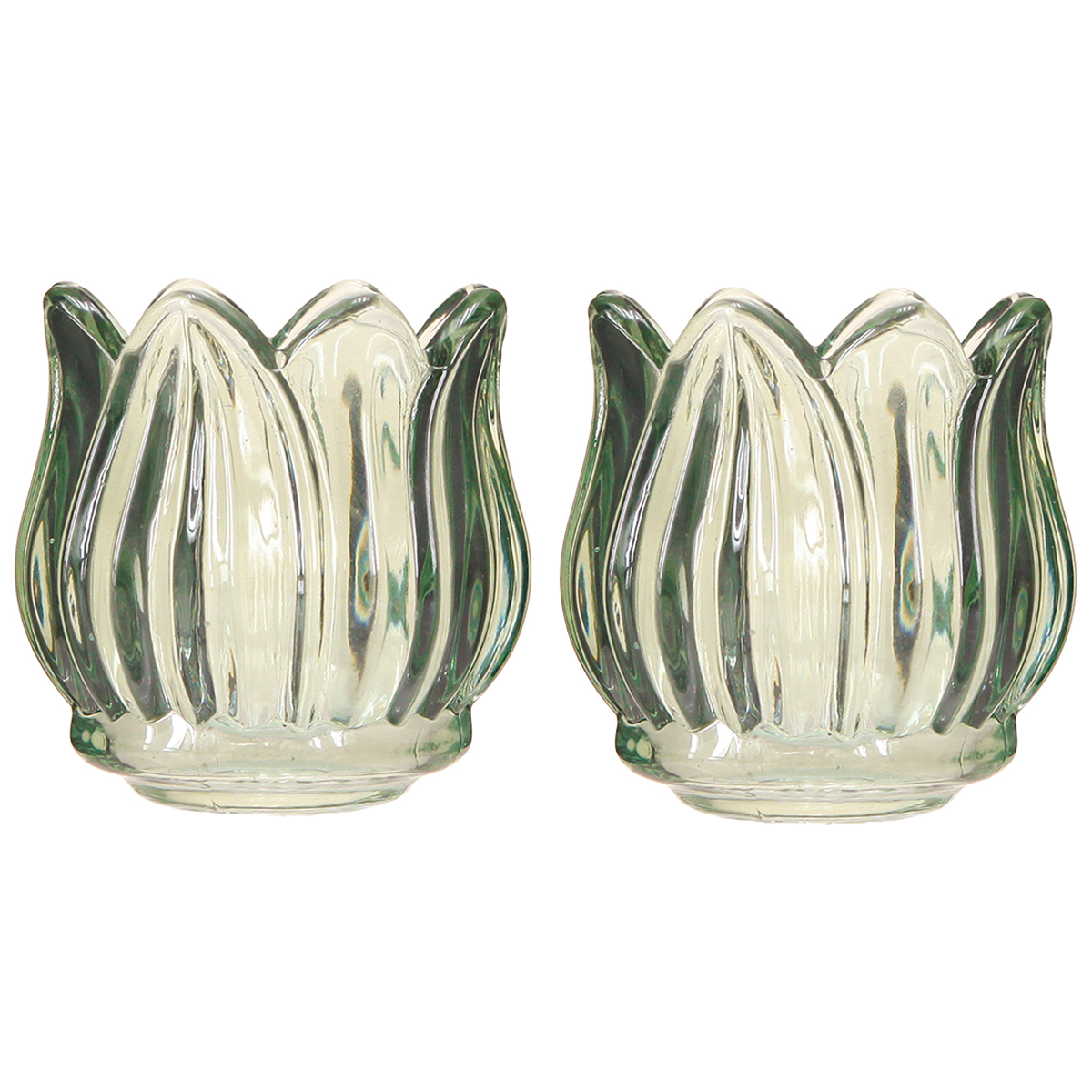 Ljusstake i glas värmeljushållare tulpangrön Ø7cm H7cm 2st