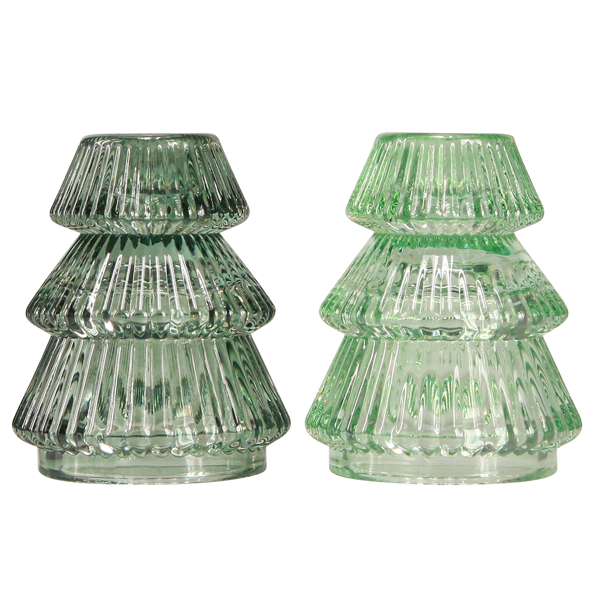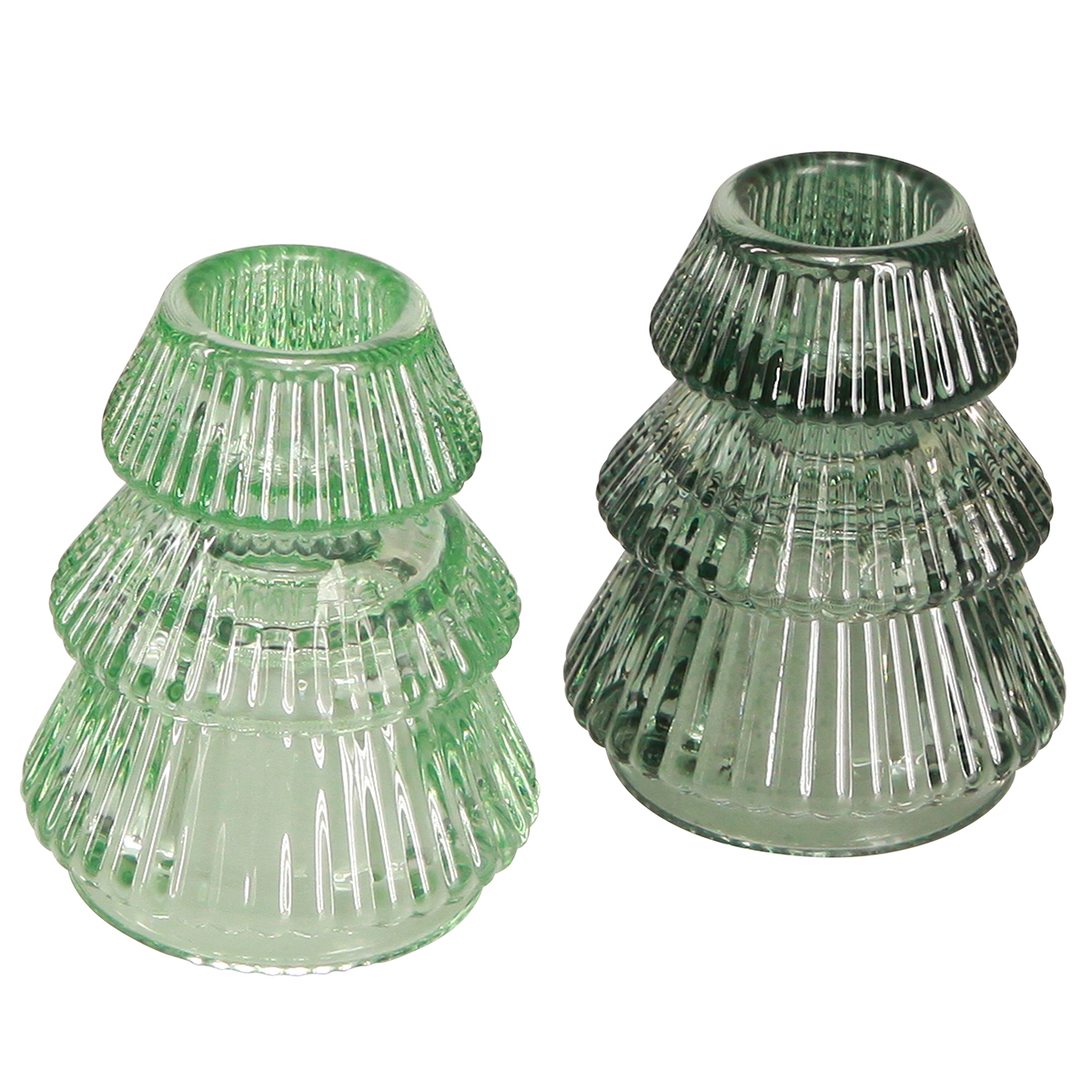 Ljusstake julgran glasljusstake grön Ø6cm H8cm 2st