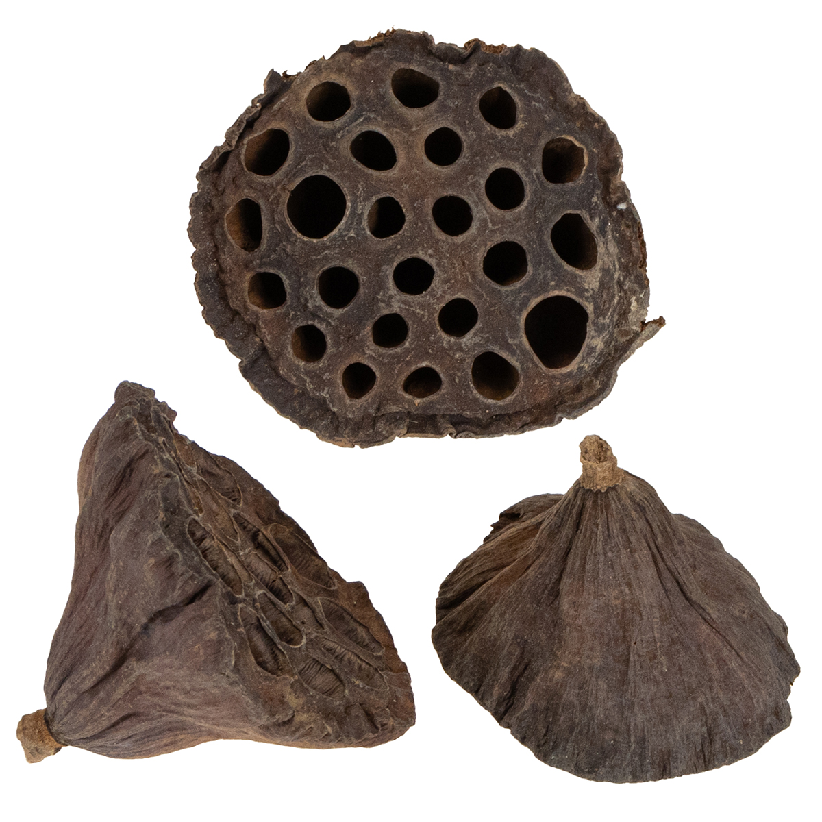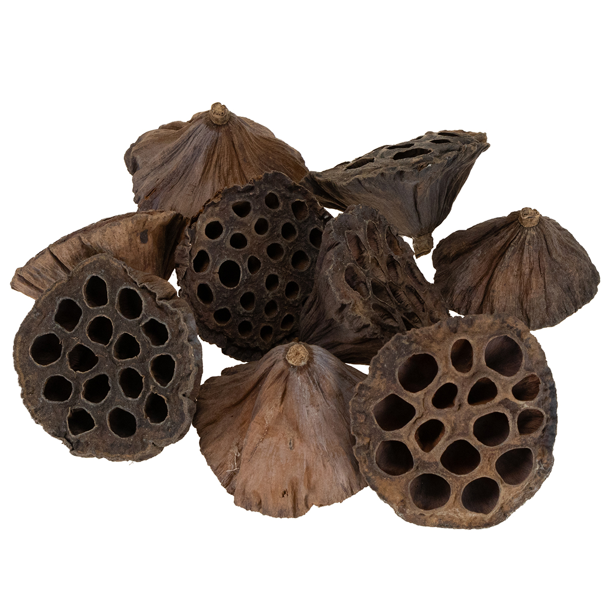 De mörkbruna torkade frukterna harmoniserar framför allt okulöra eller blekta exotiska ämnen som kokosnötskal, vassflaskor, klockkoppar och proteiner samt lokala naturprodukter som kottar, spetsiga kort och trädsvampar. Du kan ordna sådana produkter underbart på en halvcirkel tillverkad av plug-in-massa och lägga till snygga figurer, symboler och ett fint sorgband för en rund helhetsbild. Bortsett från det går lotuskapslarna också mycket bra med en naturlig och ganska rustik juldekoration och kan bland annat integreras i adventskransen eller julebordarrangemanget.