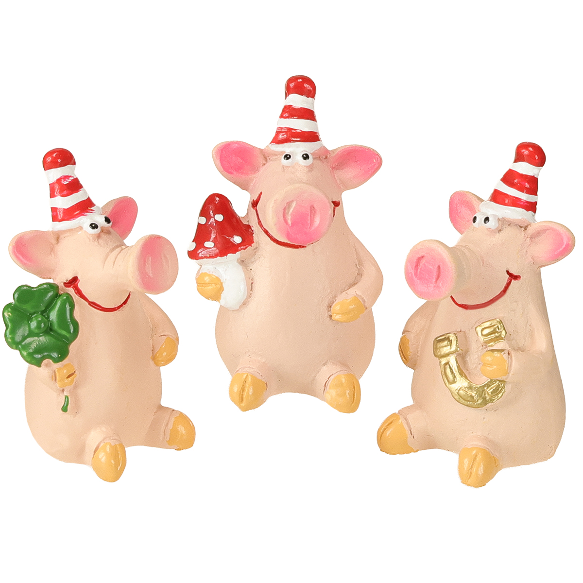 Lyckopisk dekoration gris med lyckoamuletter 5 cm 6 st