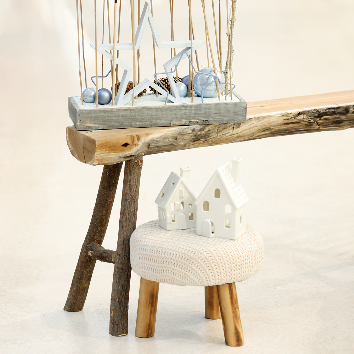 På grund av sin enkla design passar det dekorativa lykthuset lika bra till moderna juldekorationer som till ett nostalgiskt designat adventsbord. Det räcker med ett litet värmeljus, och det keramiska huset ser väldigt hemtrevligt ut. Ljusljuset lyser från det dekorativa husets alla fönster och låter små mysiga lampor lysa på bordet.