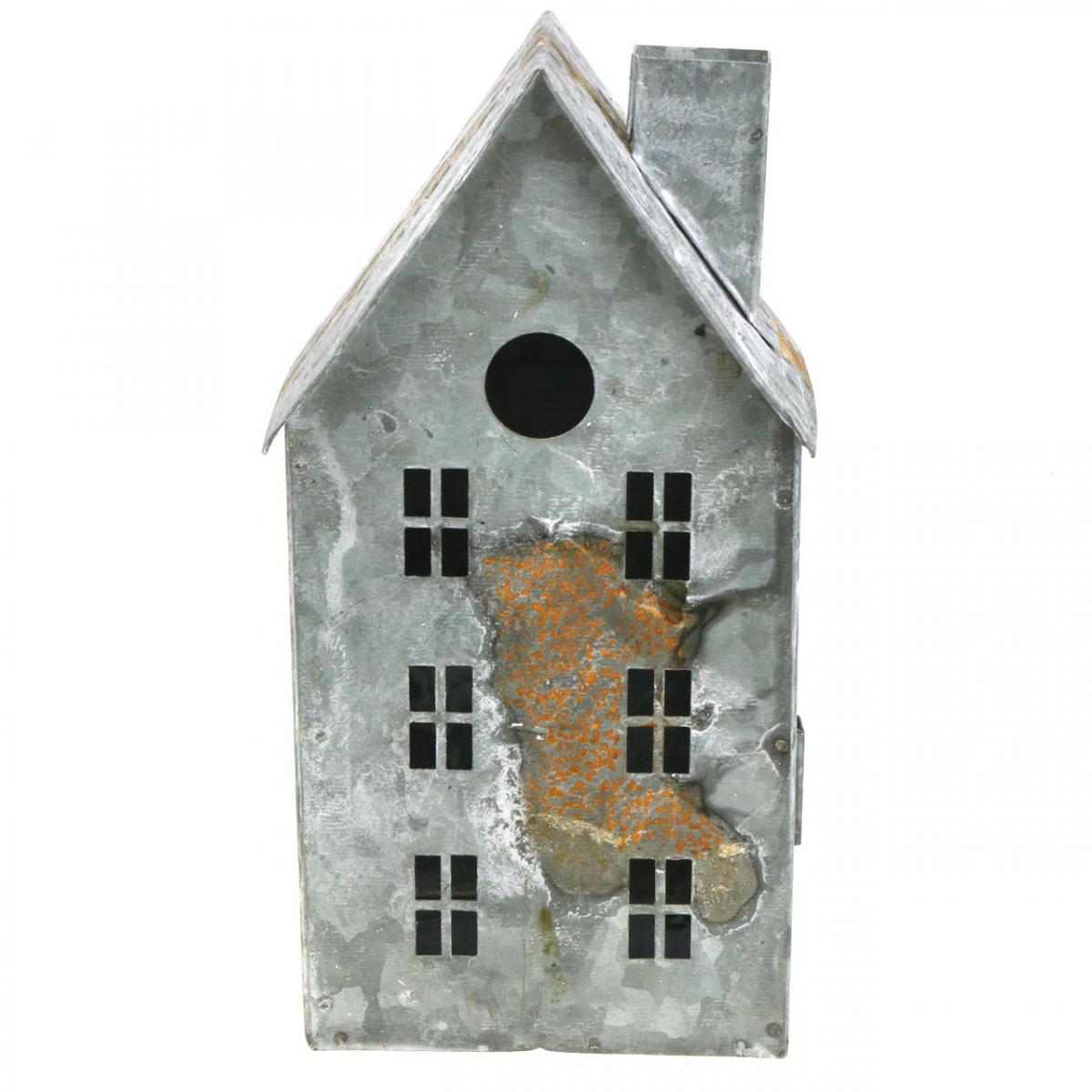 Lykthus metall shabby chic tvättad vit, rost H20cm