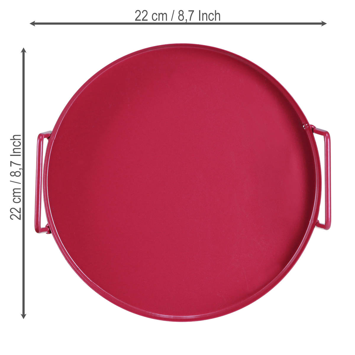 Denna runda metallbricka i vibrerande rött, med en diameter på 22 cm, är inte bara en riktig blickfångare utan också exceptionellt funktionell. De matta handtagen säkerställer ett säkert grepp och gör brickan både praktisk och praktisk. Oavsett om du vill servera drycker och snacks elegant till dina gäster eller visa upp dina favoritväxter, gör denna röda bricka alltid ett gott intryck. Den robusta metallytan är lätt att rengöra och har imponerande hållbarhet – helt enkelt en pålitlig följeslagare i alla situationer.