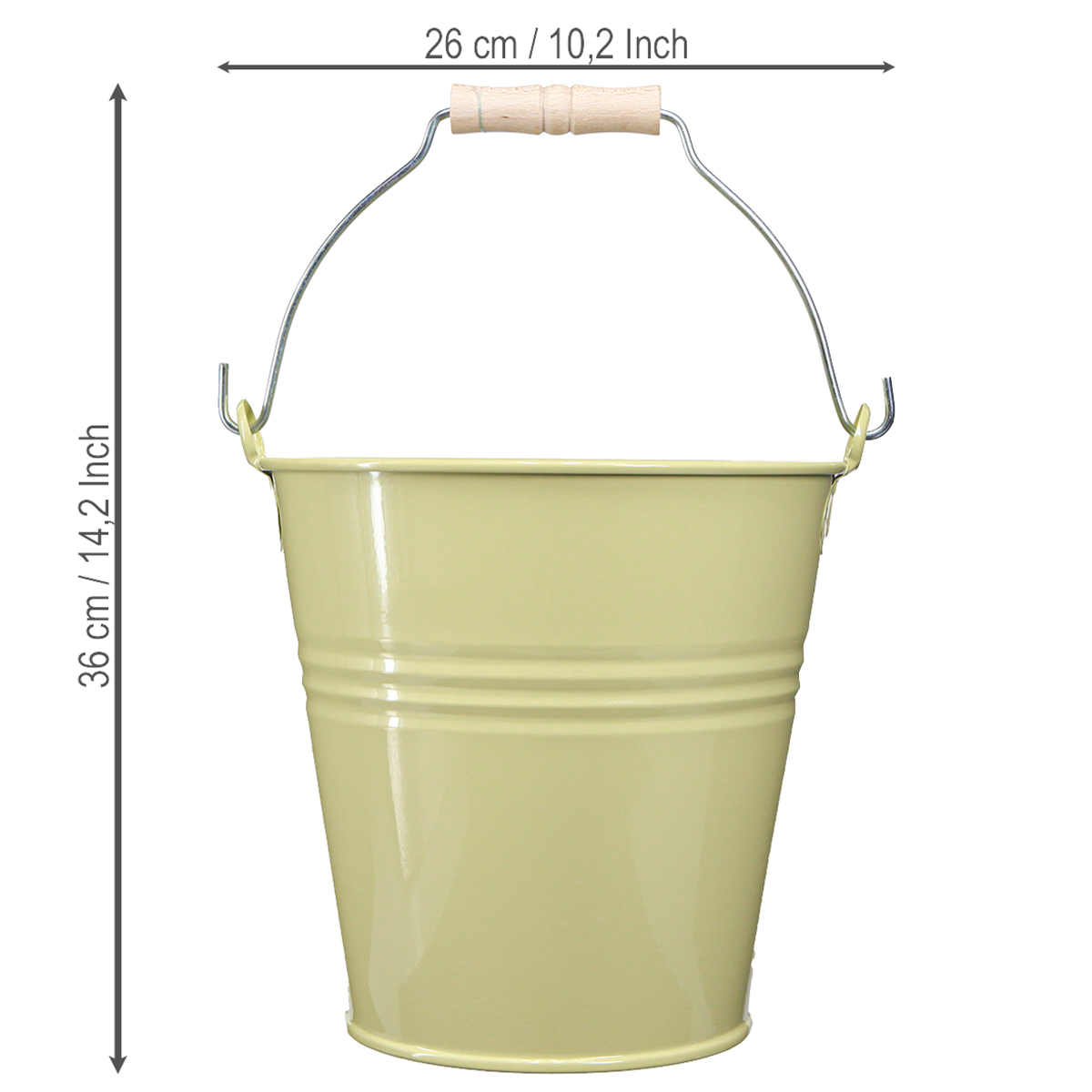 Lägg till en touch av lantlig chic till ditt vardagsrum eller trädgård med den dekorativa metallhinken som blomkruka i den fräscha gröngula färgen. Denna mångsidiga blomkruka är inte bara ett blickfång, utan erbjuder också många möjliga användningsområden för kreativa sinnen och gör-det-själv-entusiaster.