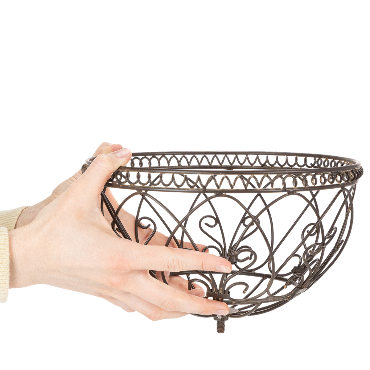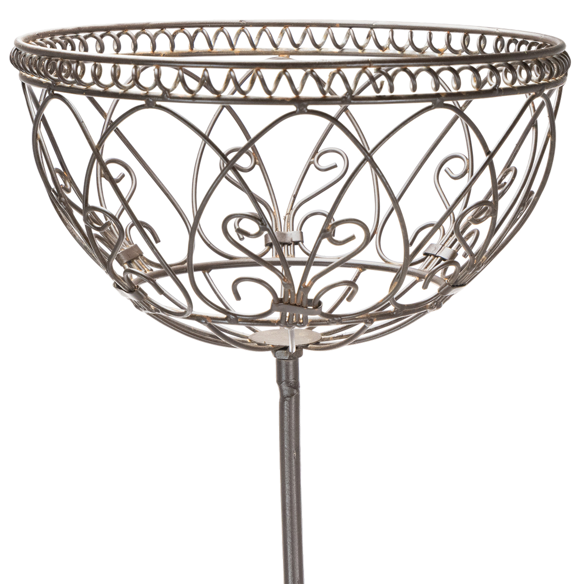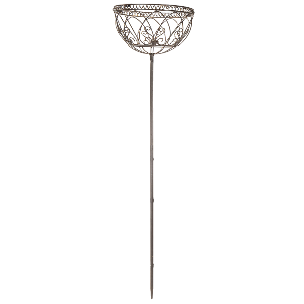 Denna metallkorg på en påle är mycket mer än bara enkel trädgårdsdekoration – det är ett unikt dekorativt föremål som berättar en historia. Dess konstfulla hantverk, med böljande linjer och fina detaljer, återspeglar elegansen i vintagestilen. Använd den som en dekorativ korg för att visa upp färska blommor, örter eller säsongsbetonade dekorationer som påskdekorationer. Alternativt fungerar den som en elegant trädgårdsdekoration i metall och skapar en slående blickfångare bredvid dina trädgårdsmöbler. Den bruna färgen harmoniserar vackert med trä, rotting eller andra naturmaterial och kan enkelt kombineras med vaser, konstgjorda blommor eller kransar.